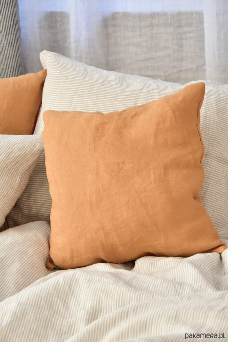 Kto powiedział, że pościel może być tylko w jednym kolorze? Przekonaj się, jak zmieni się wystrój Twojej sypialni, gdy zdecydujesz się na ręcznie szytą, dwustronną poszewkę na poduszkę. Lniana pościel zapinana na troczki to ciekawa propozycja dla wszystkich miłośników stylistyki boho, ale nie tylko! Ręcznie szyte lniane poszewki doskonale pasują także np. do wnętrz utrzymanych w klimacie rustykalnym.