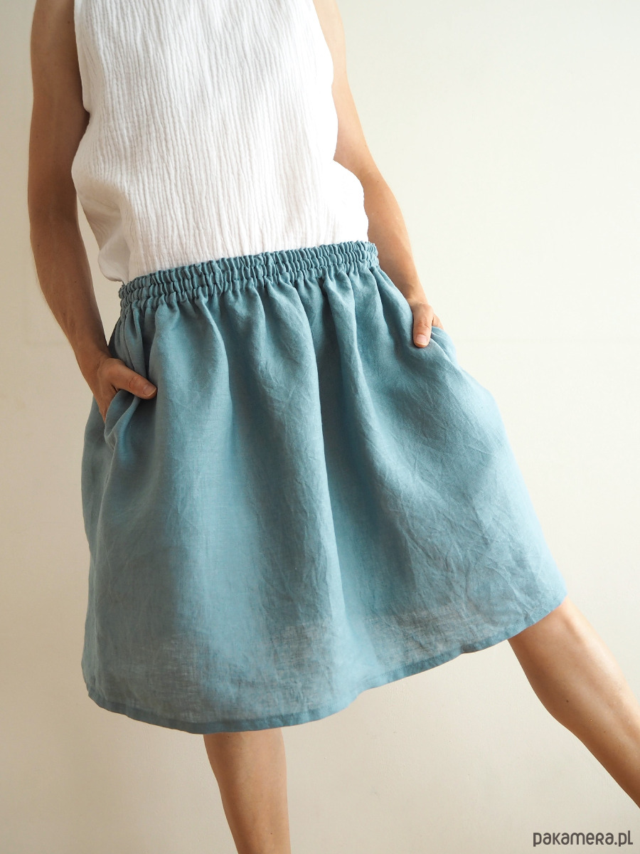 Lniana spódnica z wpuszczanymi kieszeniami "MEW" jest naszym ekologicznym ubraniem. Zaprojektowana i uszyta w Polsce przez madebyjokpa z myślą o maksymalnym komforcie, w duchu slow fashion. Wykonana z polskiego, zmiękczanego 100% lnu, delikatna, cudownie wygodna, miła dla skóry i oka, luźna, przewiewna, super na lato.