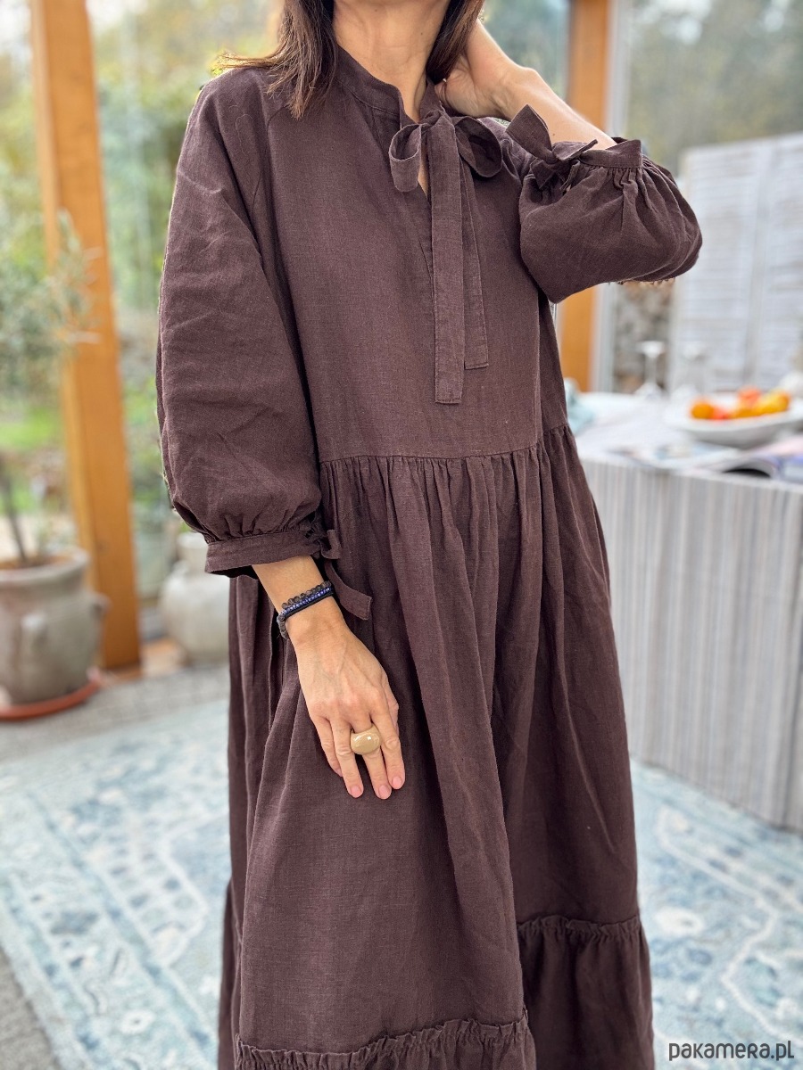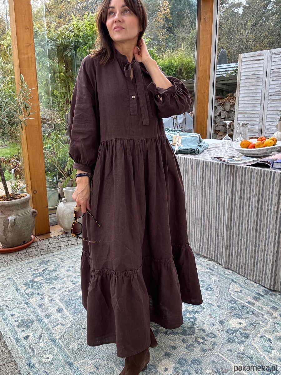 Sukienka Deia to swobodna interpretacja stylu boho w naturalnym wydaniu. Uszyta z 100% lnu o gramaturze 205 g/m², zapewnia lekkość, przewiewność i komfort noszenia niezależnie od pory roku. To propozycja dla osób, które cenią naturalne tkaniny, prostą formę i ponadczasowy styl.