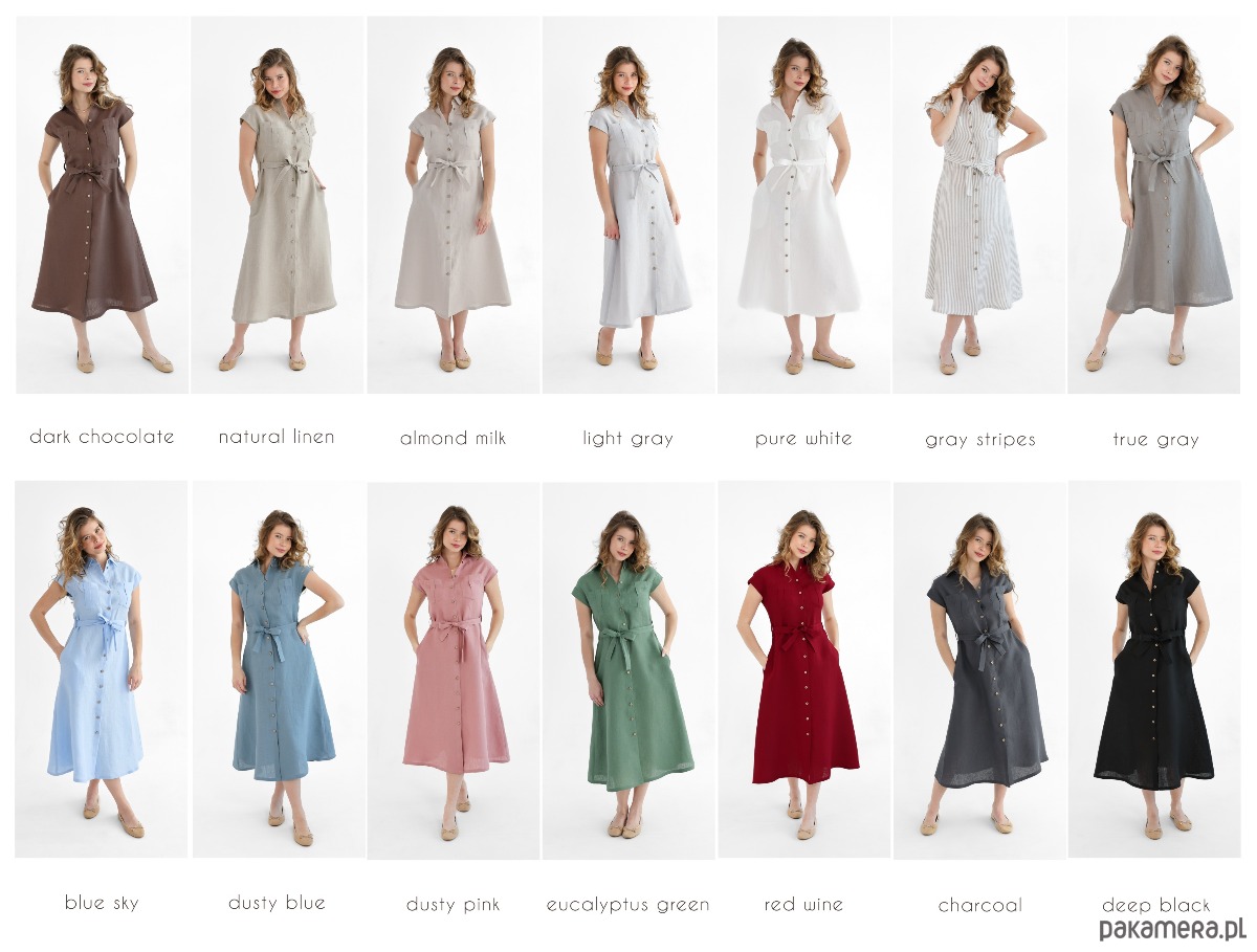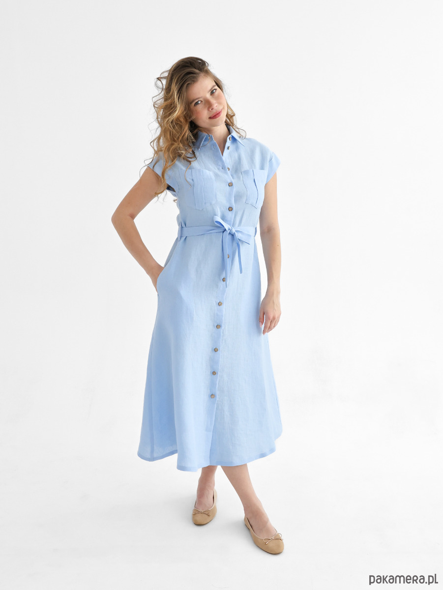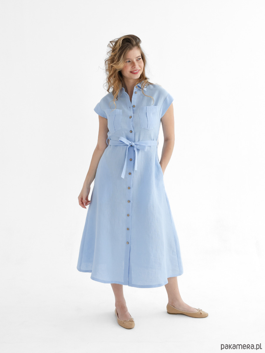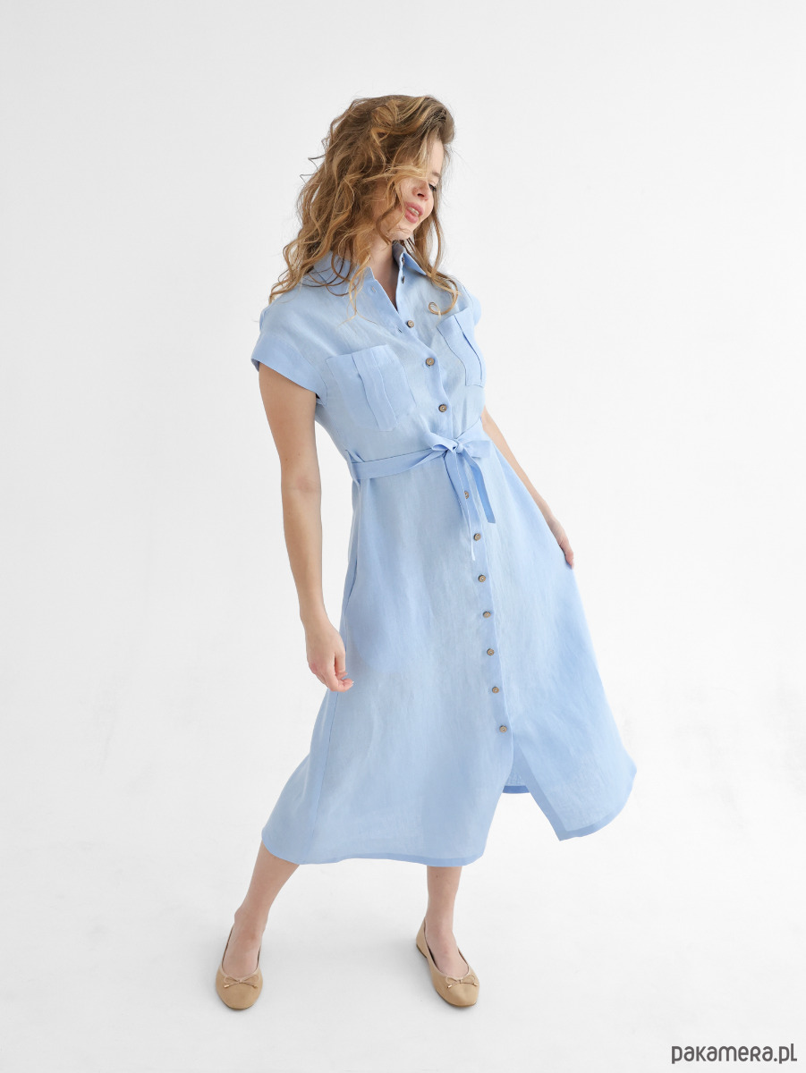 Lniana sukienka z krótkim rękawem zapinana na kokosowe guziki, uszyta z miękkiego, naturalnego lnu. Elegancki pasek podkreślający talię, można zawiązać z boku, z tyłu lub z przodu. Sukienka z powodzeniem sprawdzi się nie tylko na co dzień, ale także podczas bardziej odświętnych okazji. MARIGOLD, jak każda z naszych sukienek, posiada także praktyczne kieszenie!