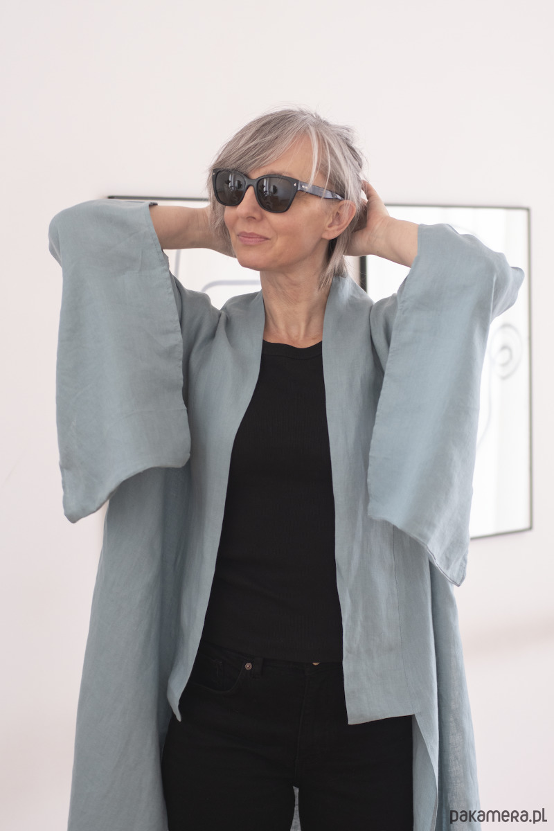 Lniane KIMONO long w kolorze zachmurzonego nieba.