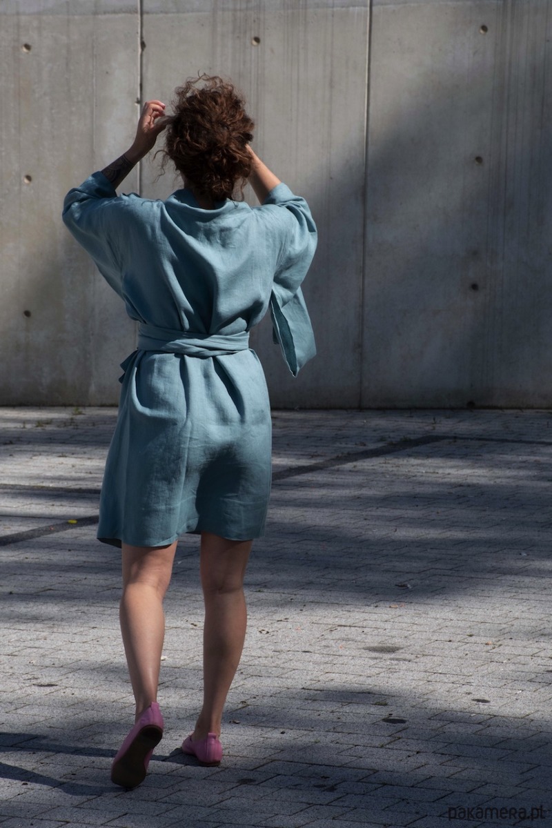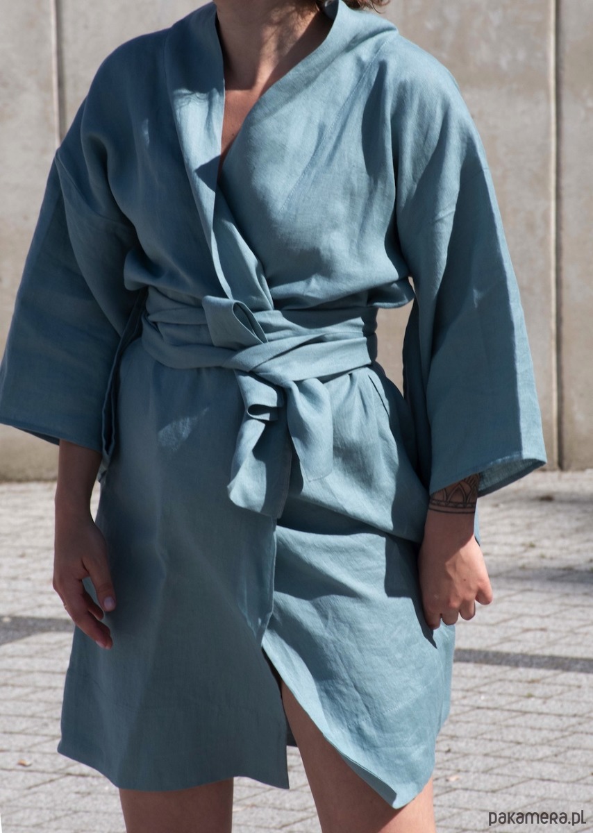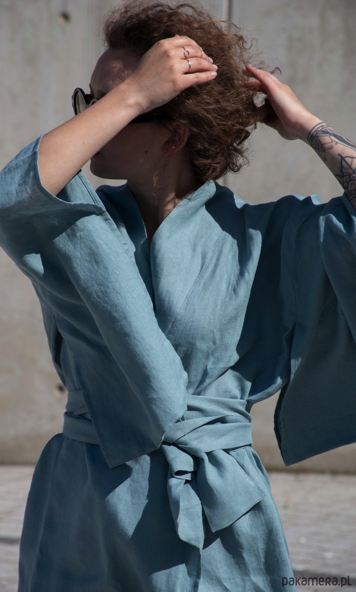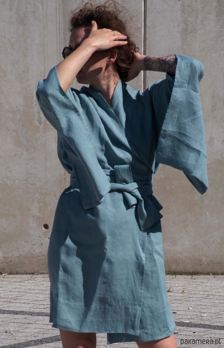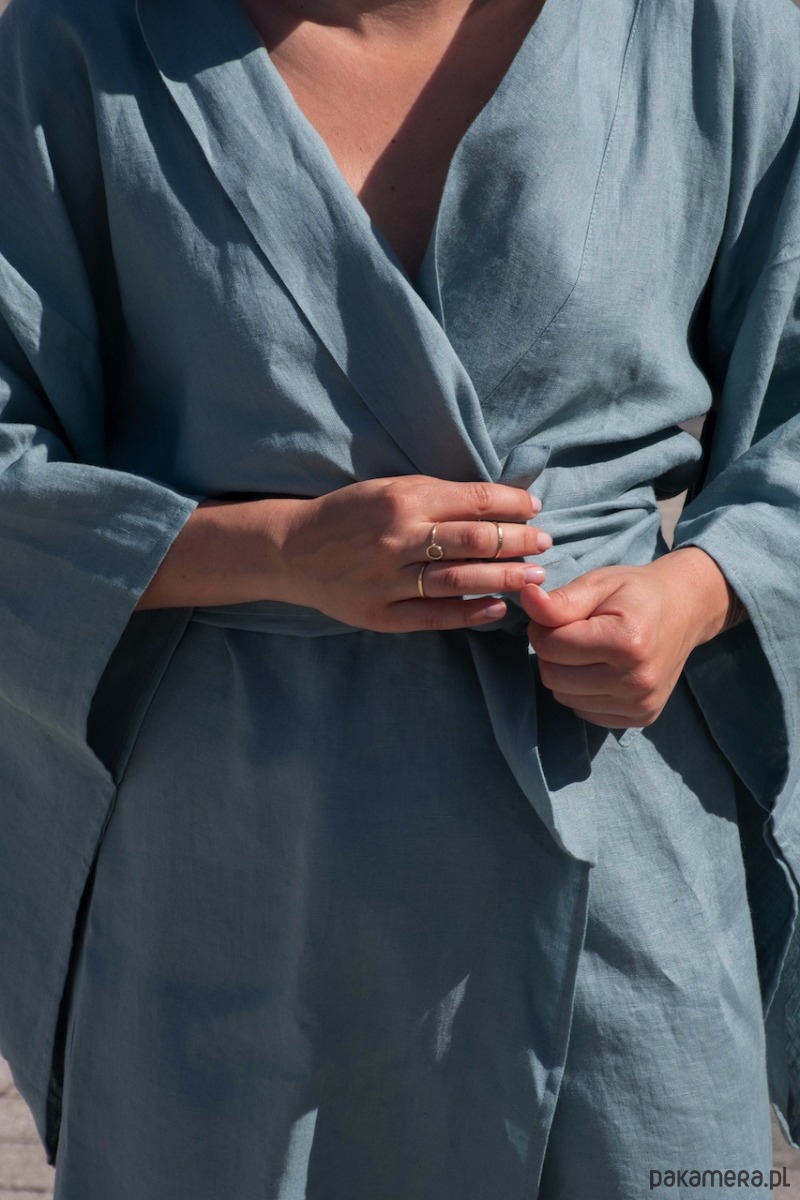 Lniane kimono inspirowane modą oraz tradycją japońską w kolorze zachmurzonego nieba ( zgaszony niebieski)