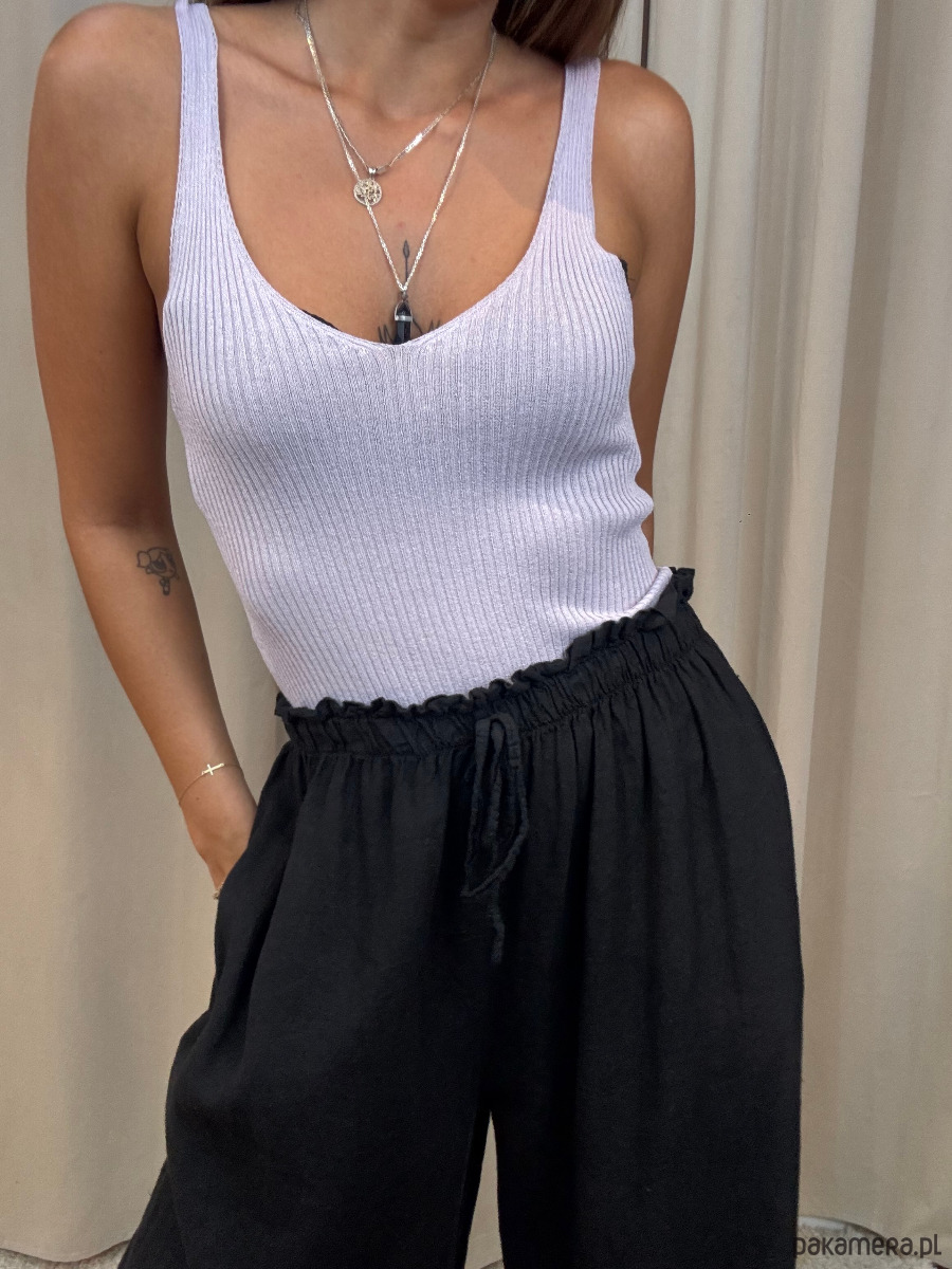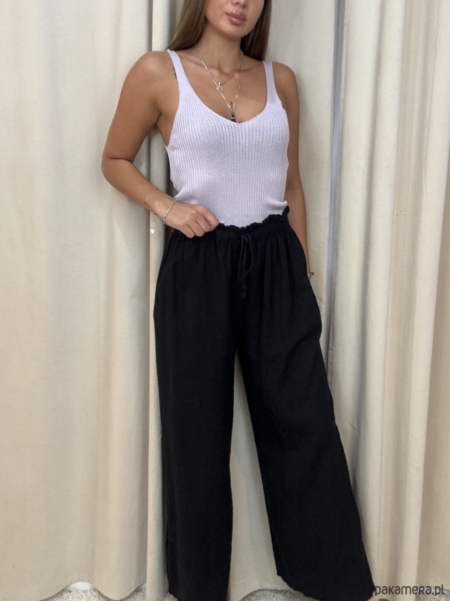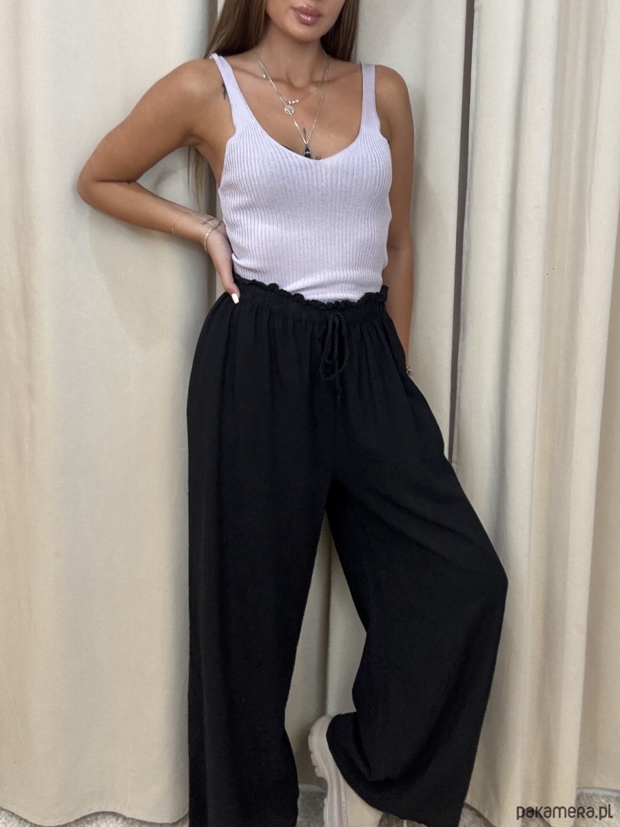Czarne spodnie z gumą w pasie, włoskiej produkcji.