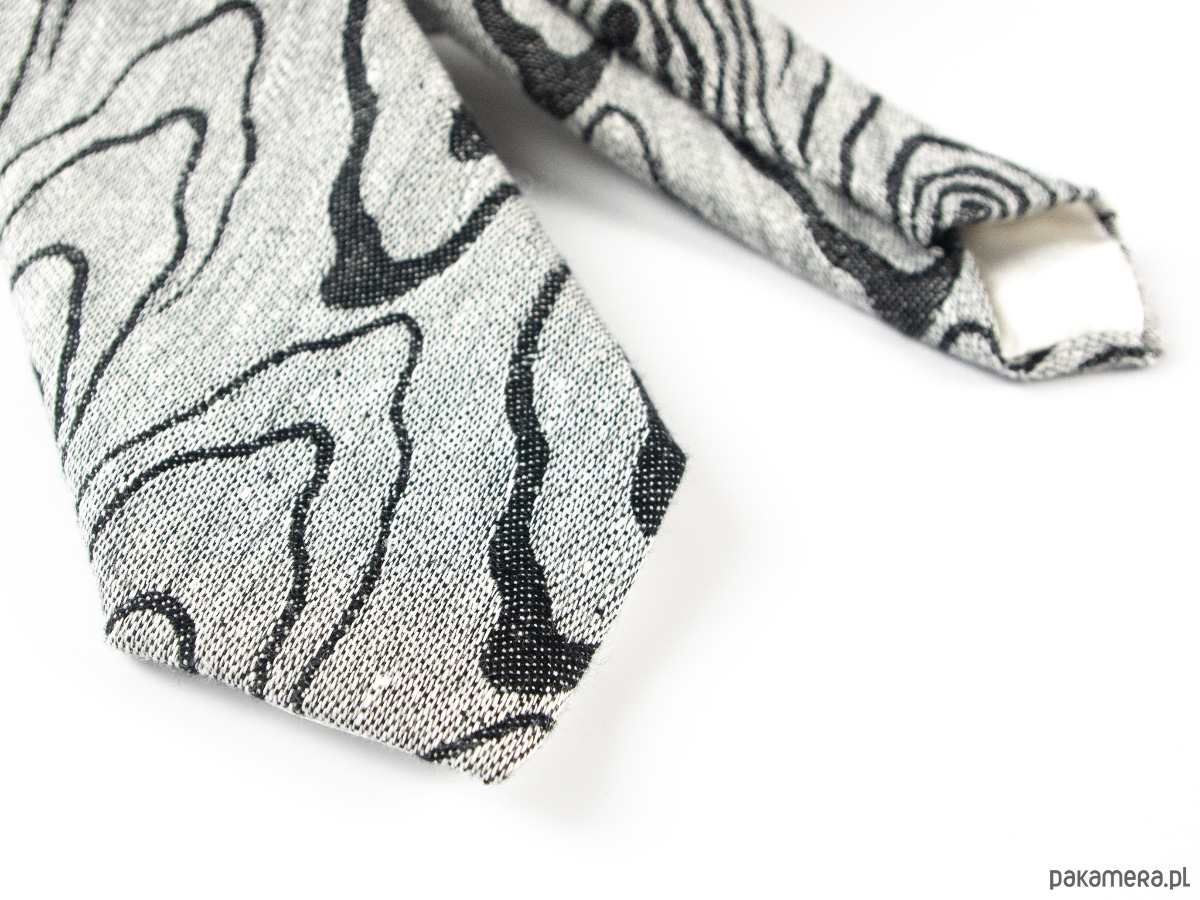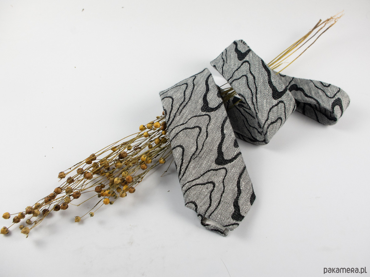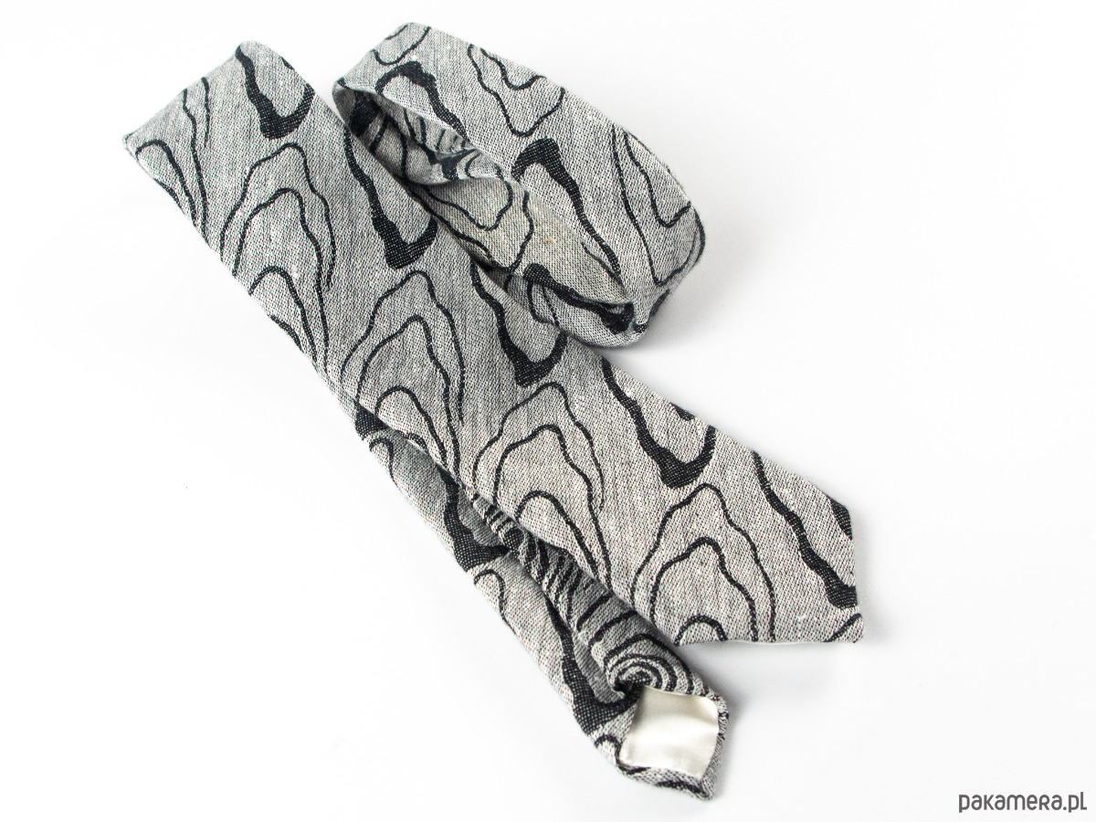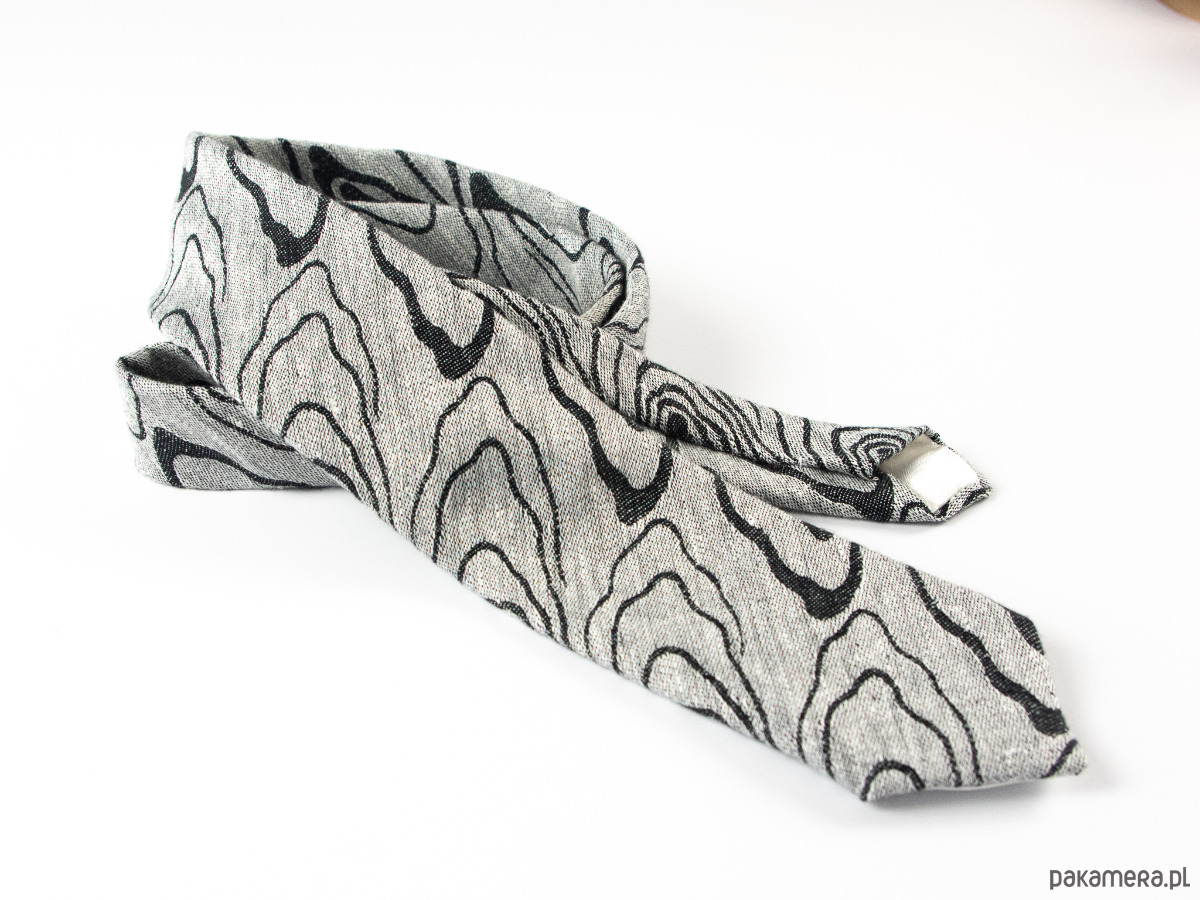 Wyjątkowy krawat z żakardu lnianego wyprodukowanego w Żyrardowskim Muzeum Lniarstwa na zabytkowych krosnach mechanicznych.