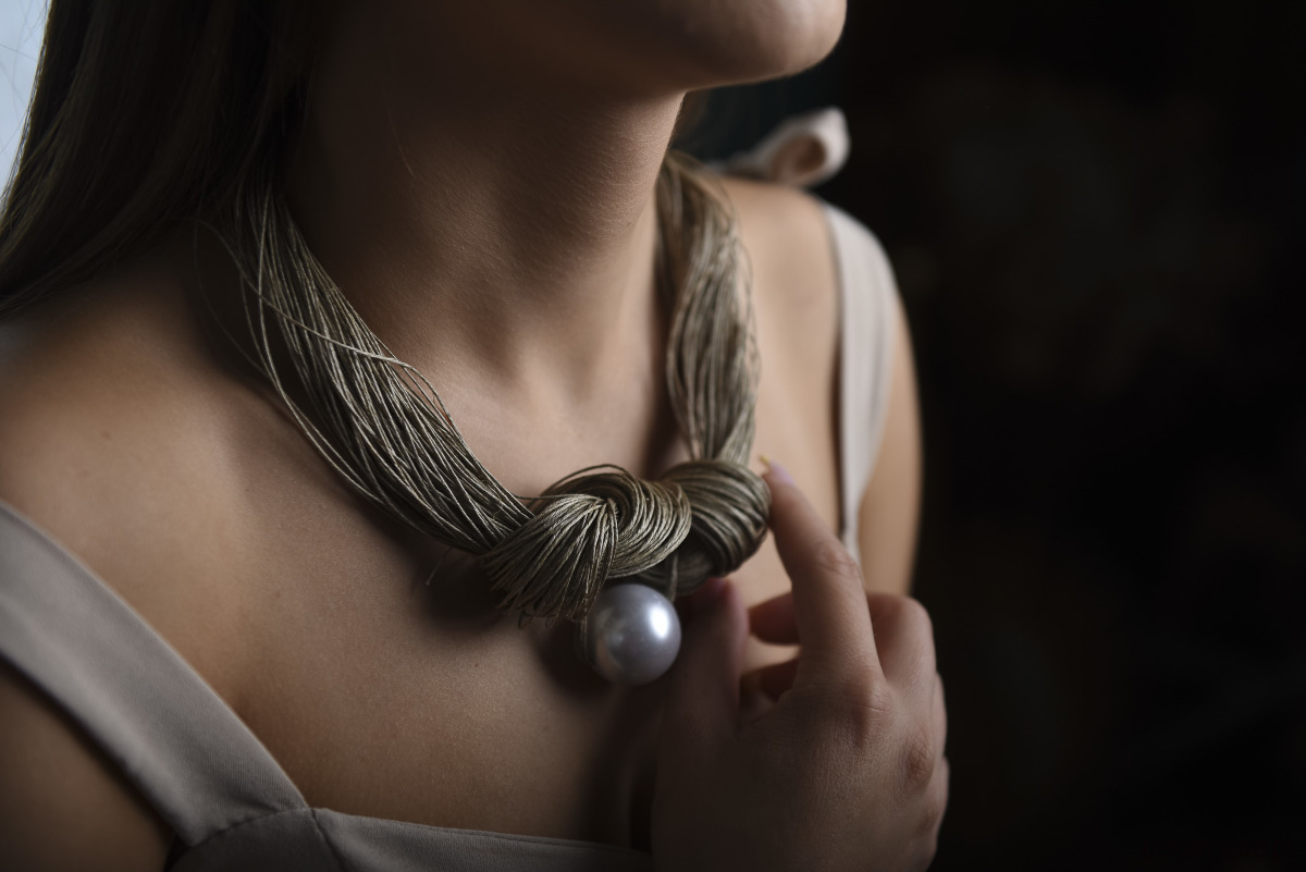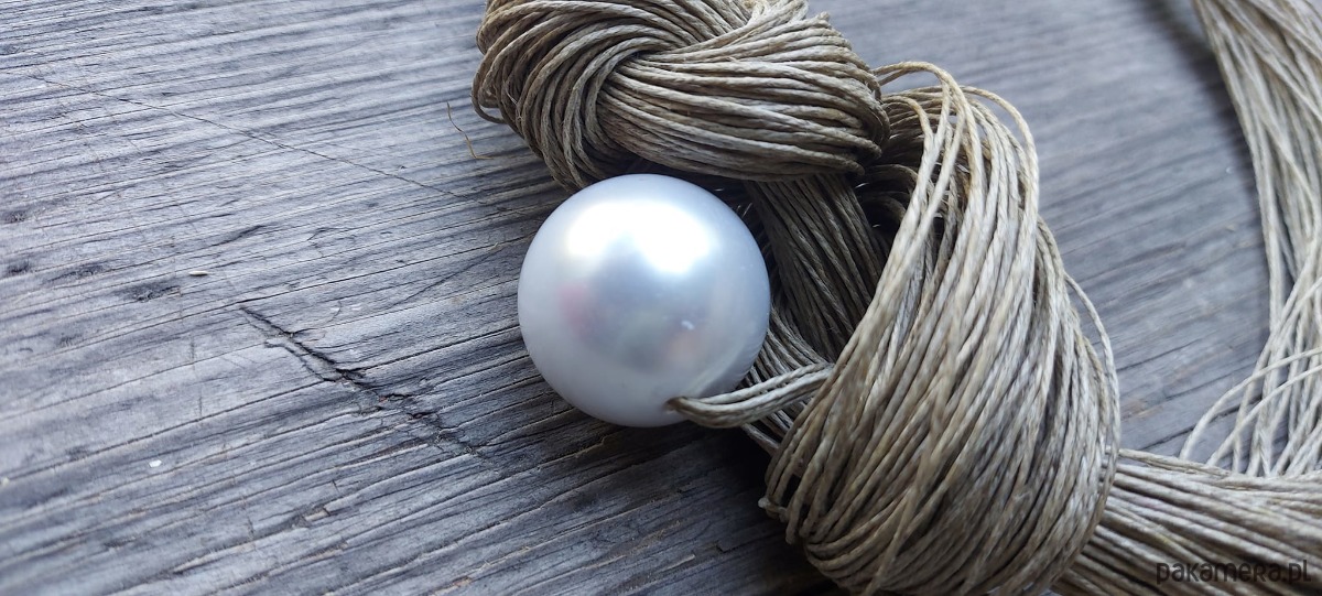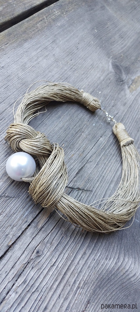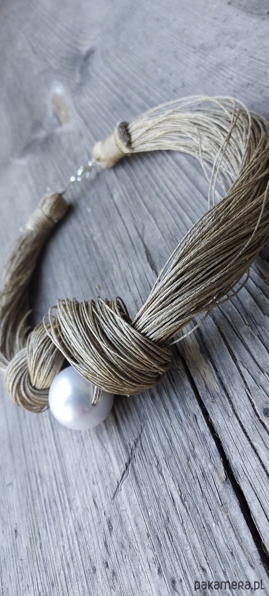 Lniany naszyjnik z perłą