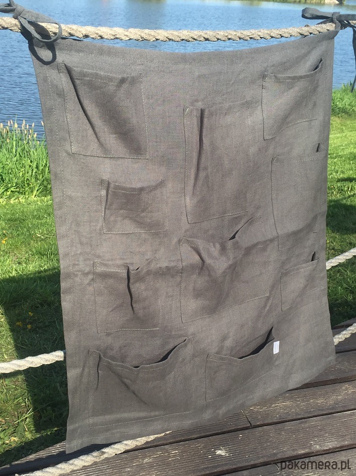 Lniany organizer na ścianę khaki, organizer do łóżeczka