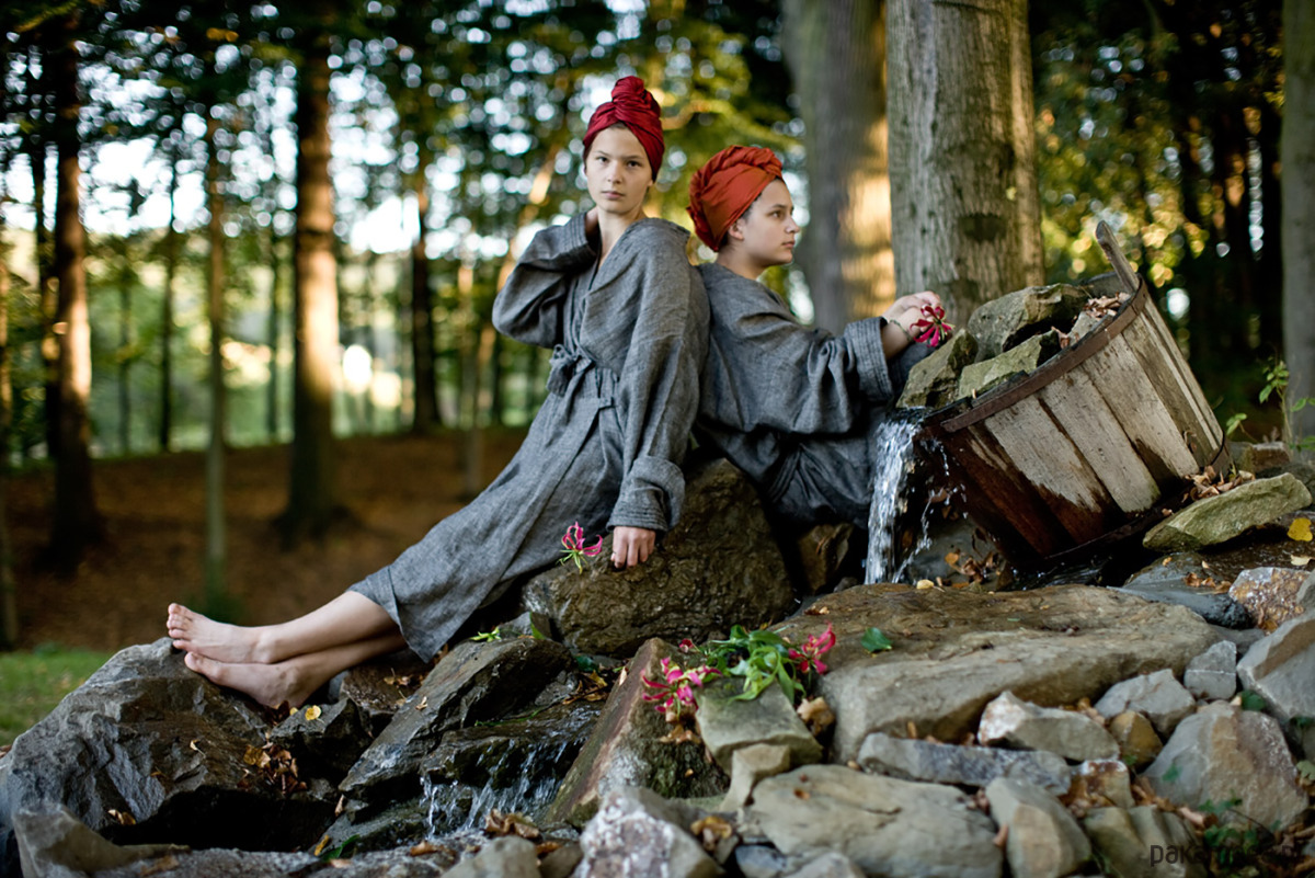 Szlafrok lniany posiada właściwości higroskopijne, ma dużą chłonność