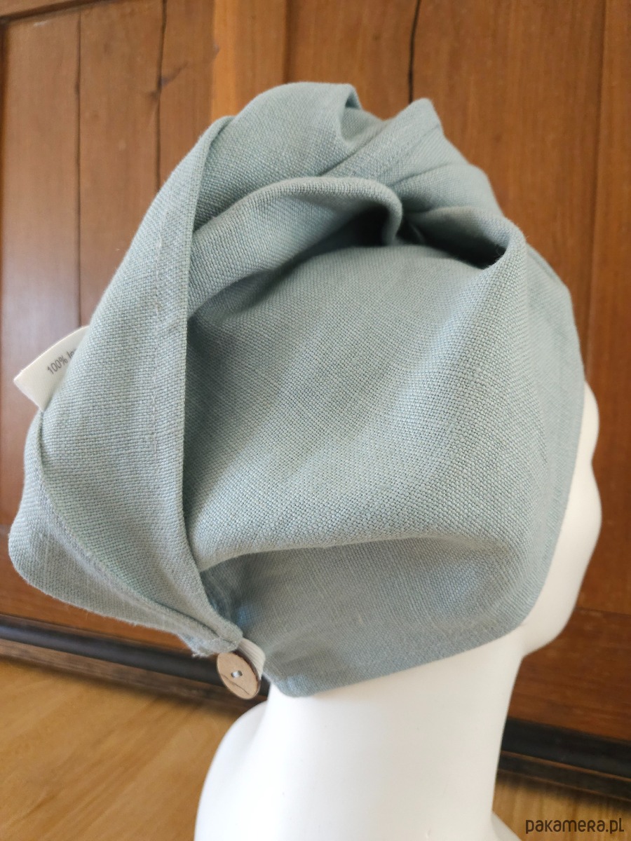 Len jest znany ze swoich właściwości antybakteryjnych i hipoalergicznych, dzięki czemu jest doskonałym wyborem nawet dla wrażliwej skóry. Z każdym użyciem staje się jeszcze bardziej miękki i przyjemny w dotyku. Przemyślana konstrukcja i wygodne zapięcie na kokosowy guzik sprawiają, że turban stabilnie utrzymuje się na głowie, delikatnie otulając włosy i wspomagając ich naturalne schnięcie.