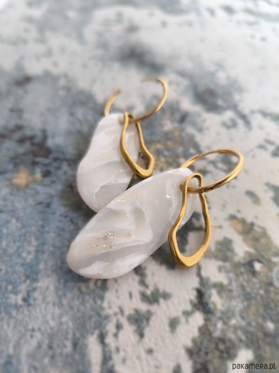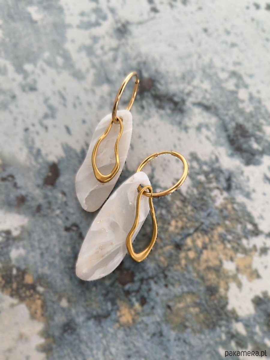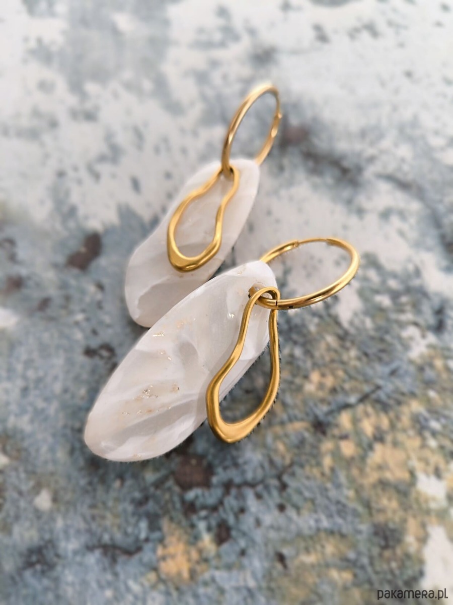 Kolczyki w stonowanej delikatnej jasnej kolorystyce z połyskiem i ze złocistymi akcentami