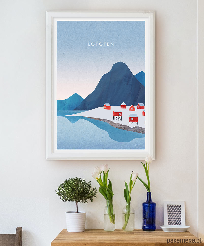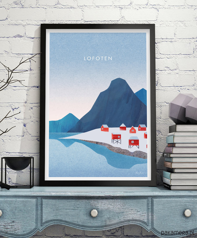 Zimowy plakat Lofoty - miasteczko pod śniegiem zabiera nas na krańce Norwegii, w jej najbardziej malownicze regiony. Niesamowity archipelag pełen skał i fiordów pobudza do marzeń o zimowej przygodzie. Grafika Lofoty to idealne uzupełnienie wystroju wnętrza nie tylko w zimowym sezonie.