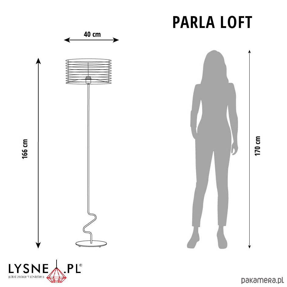 Wymiary lampy: wysokość - 166 cm, szerokość - 40 cm