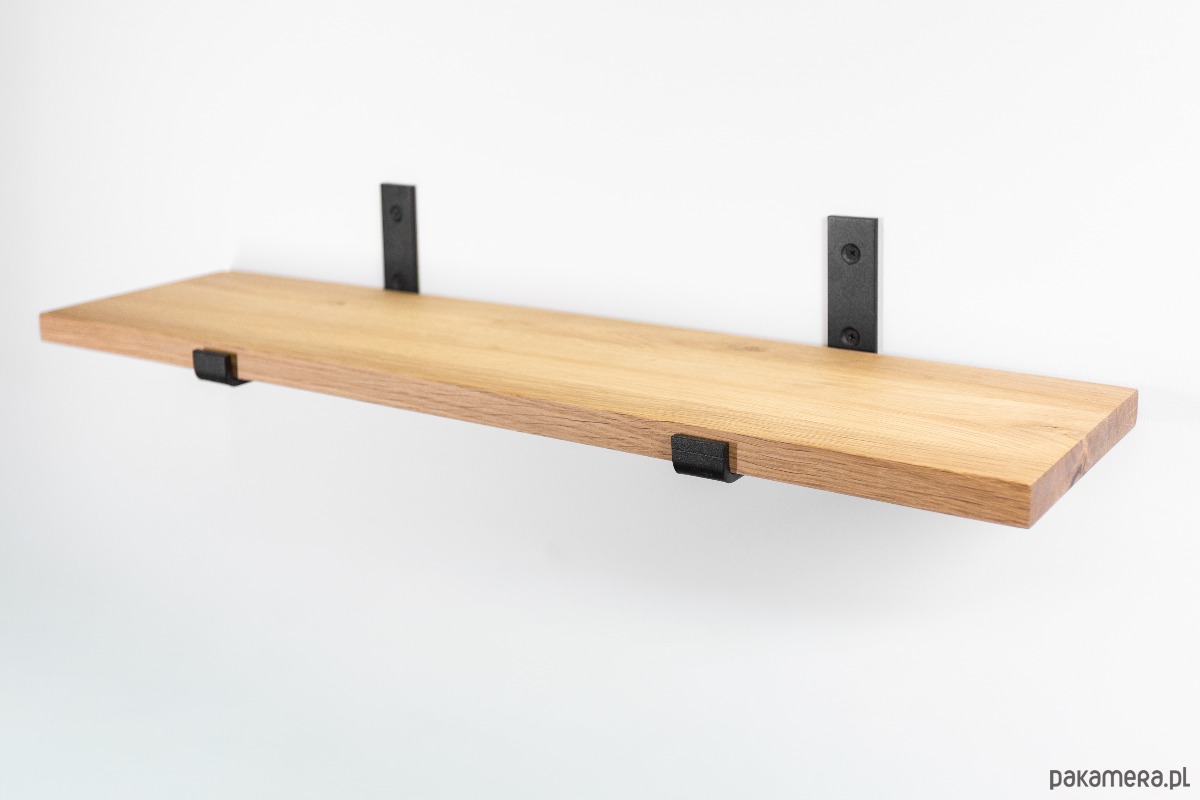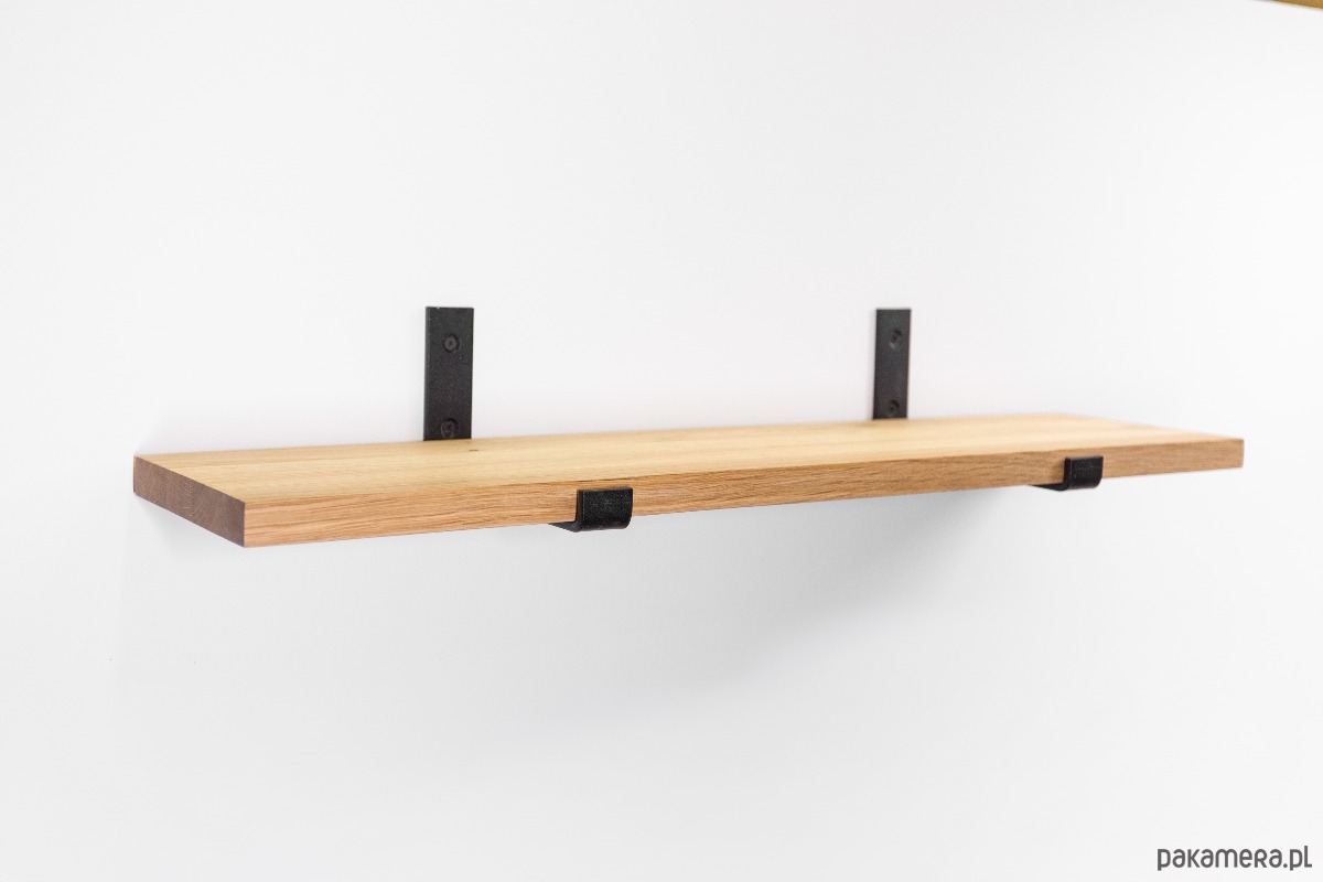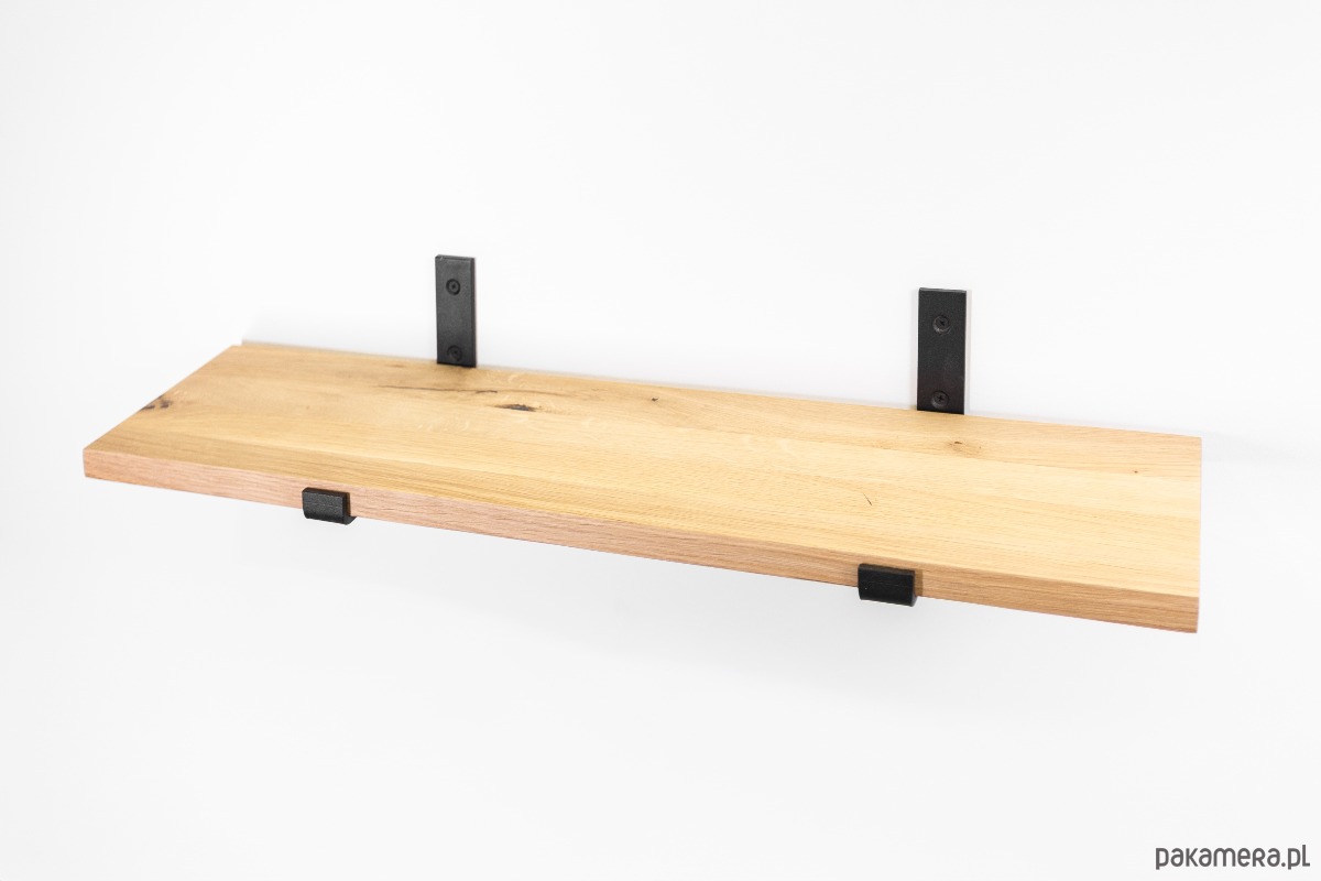 Półka dębowa z loftowymi, czarnymi uchwytami