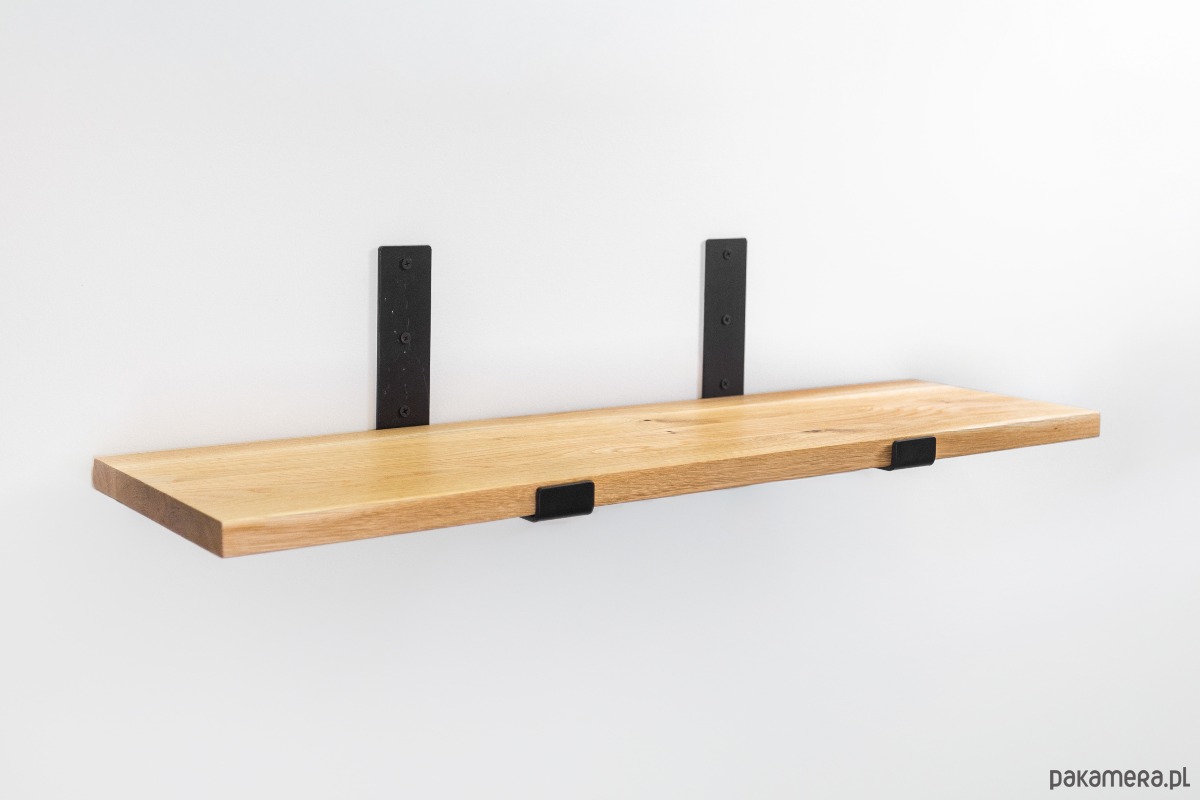 Półka dębowa z loftowymi, czarnymi uchwytami
