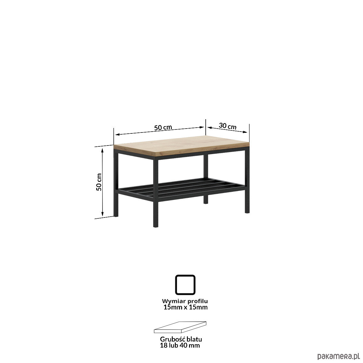 *grubość profili konstrukcji – 15 mm x 15 mm;