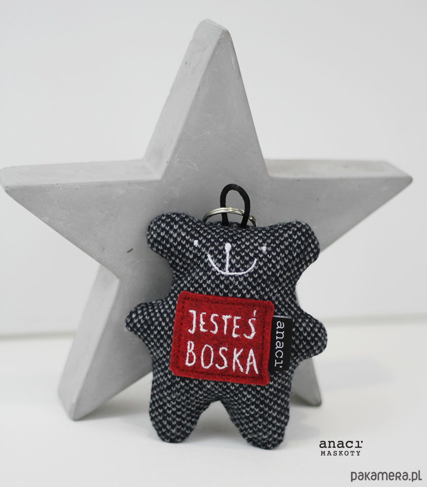 Mierzy sobie 10,5 cm., zaopatrzona w filcową plakietkę z wyhaftowaną dedykacją.
