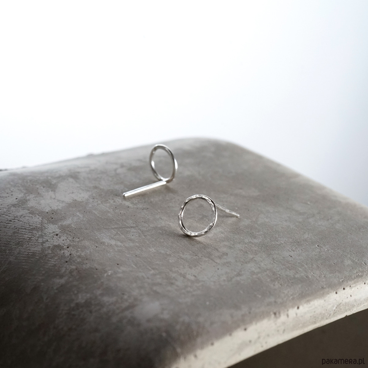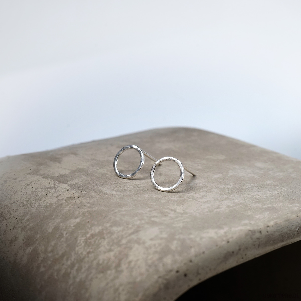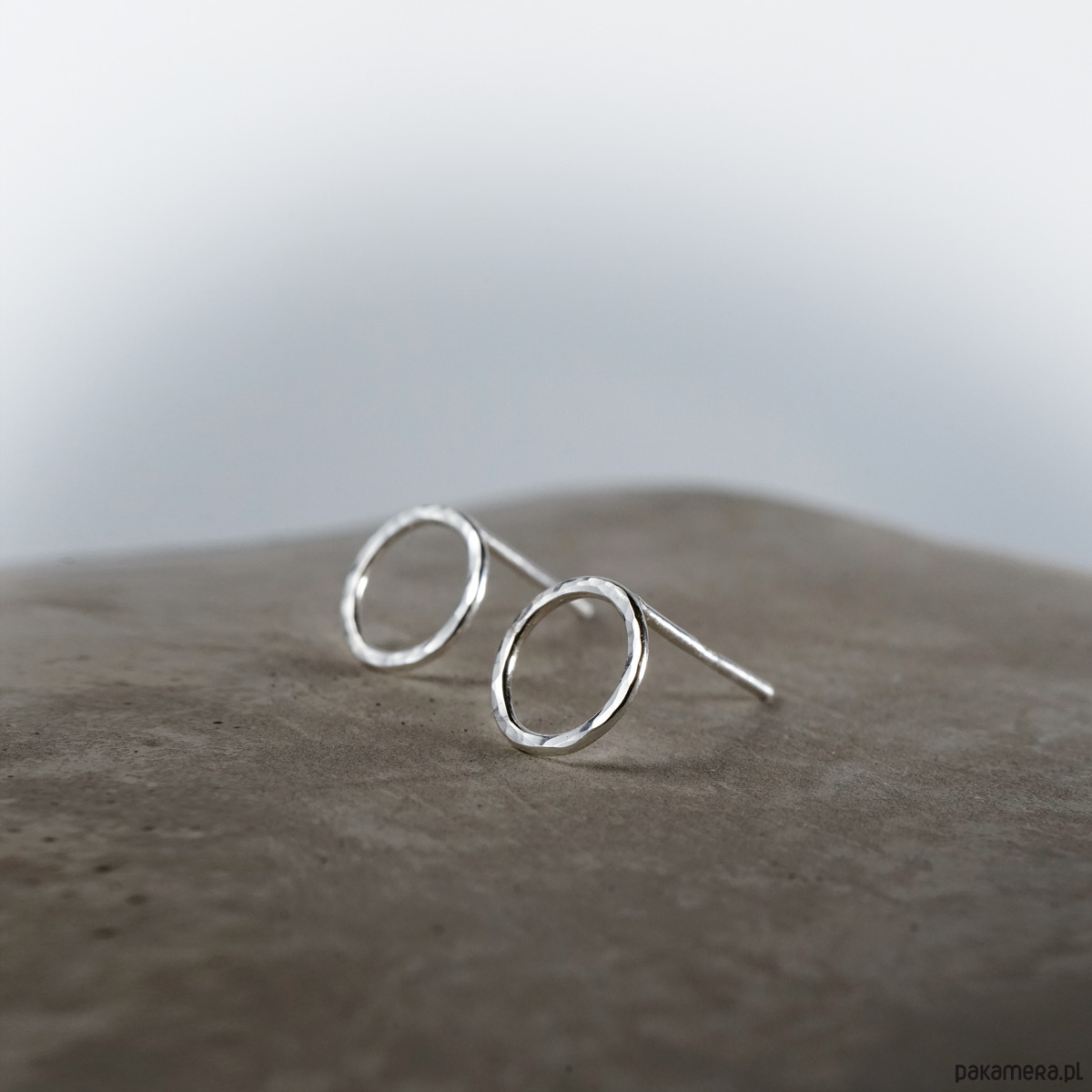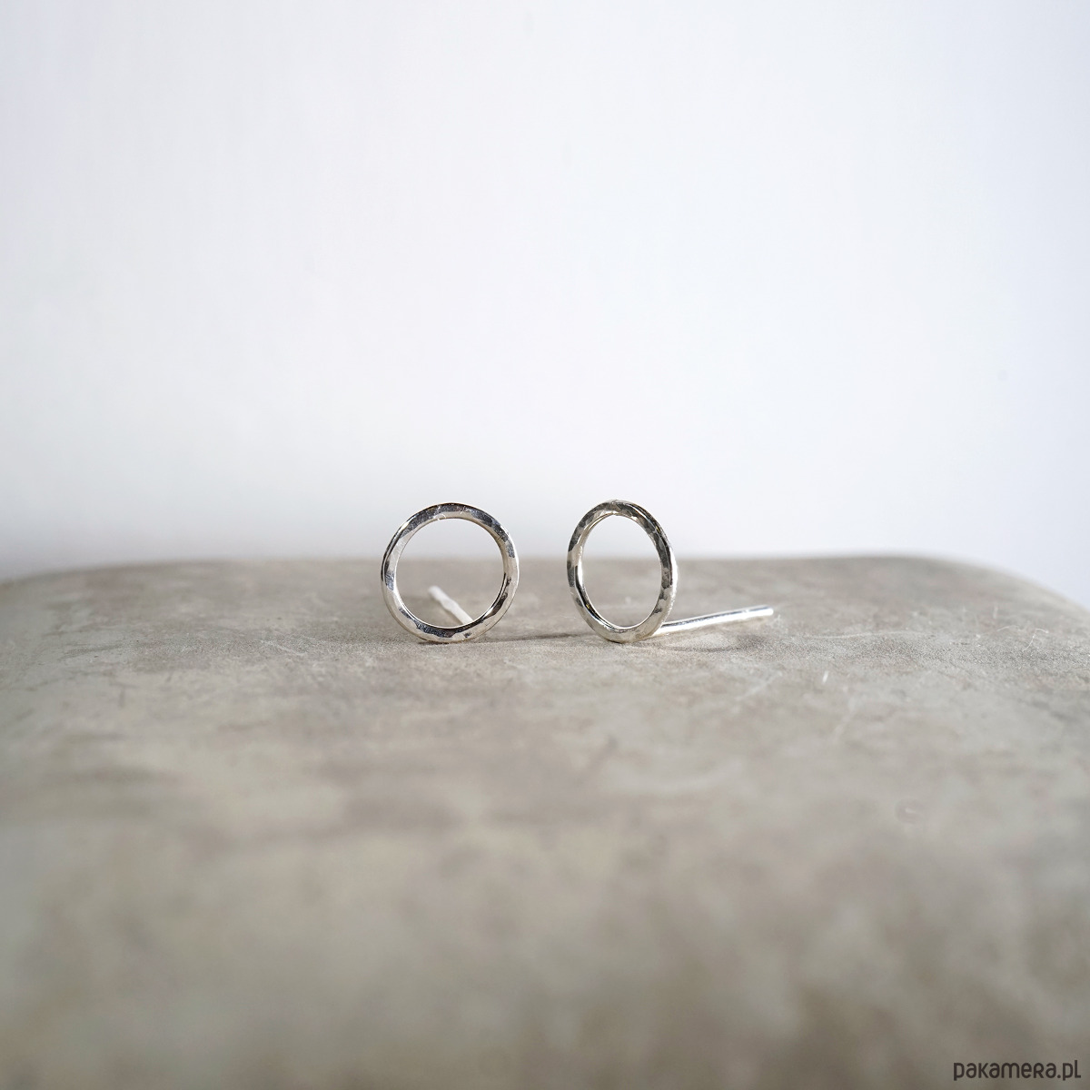 Srebrne, ręcznie wykonane kolczyki. Srebro z młotkowaną fakturą, polerowane.