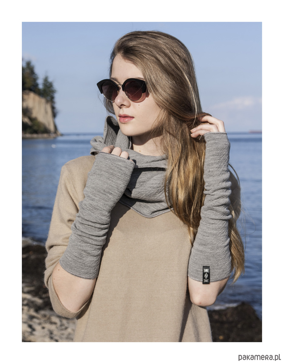PL / długie rękawiczki z jasno szarej dzianiny / uniwersalny rozmiar / długość - 38cm / skład - 60% wełna 35% bawełna 5% elastan