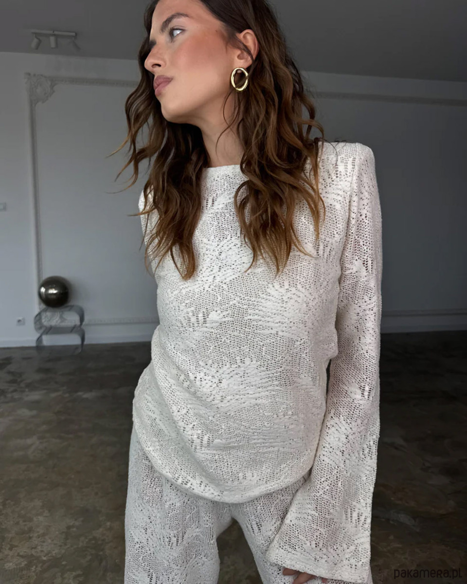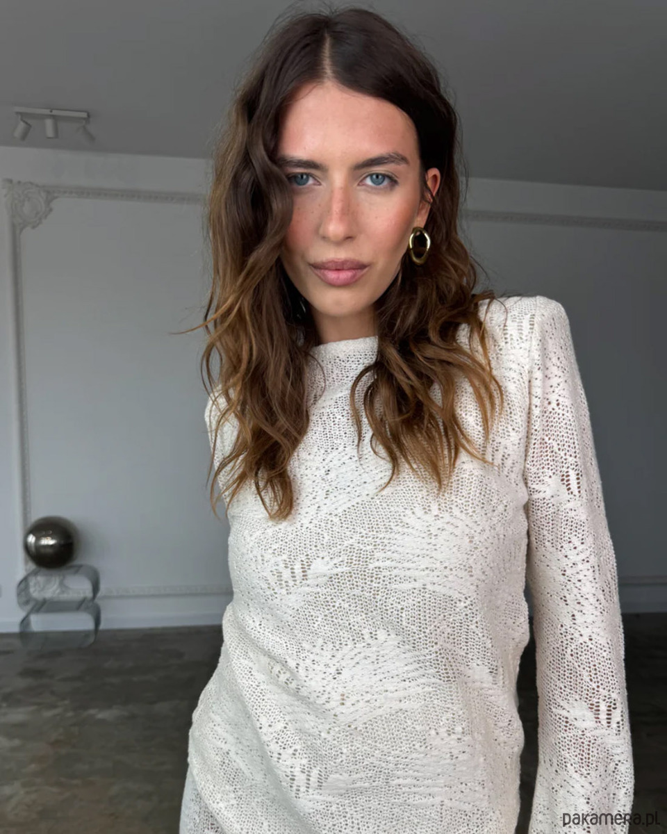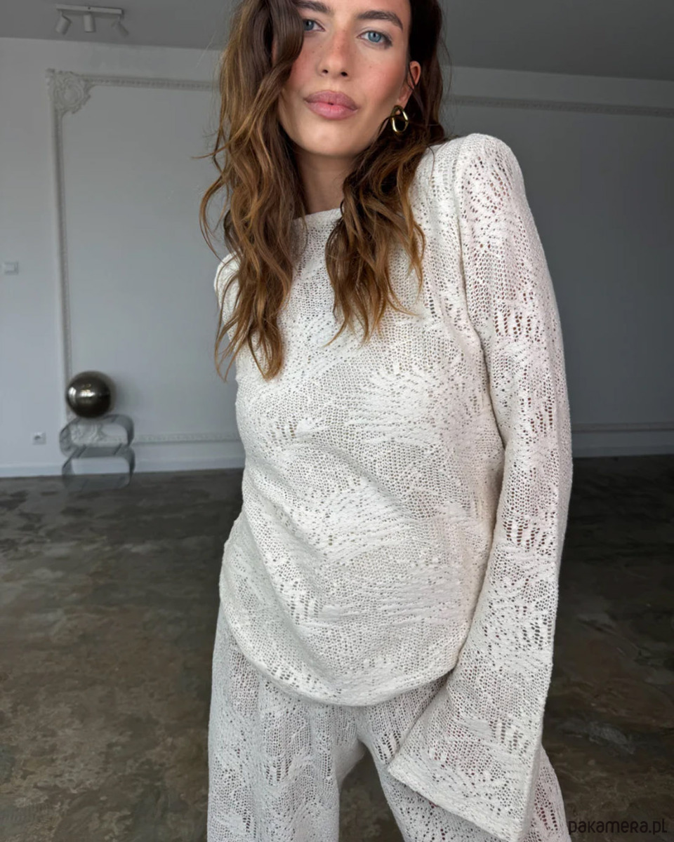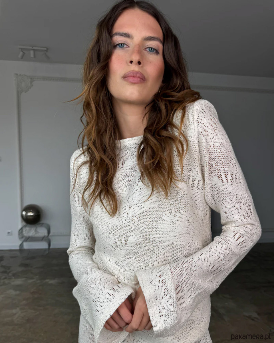 Longsleeve Sense Crochet w odcieniu ecru to subtelna interpretacja klasycznej bazy w kapsułowej garderobie. Wykonany z ażurowej, szydełkowej dzianiny, łączy lekkość i naturalność z dopracowaną, minimalistyczną formą.