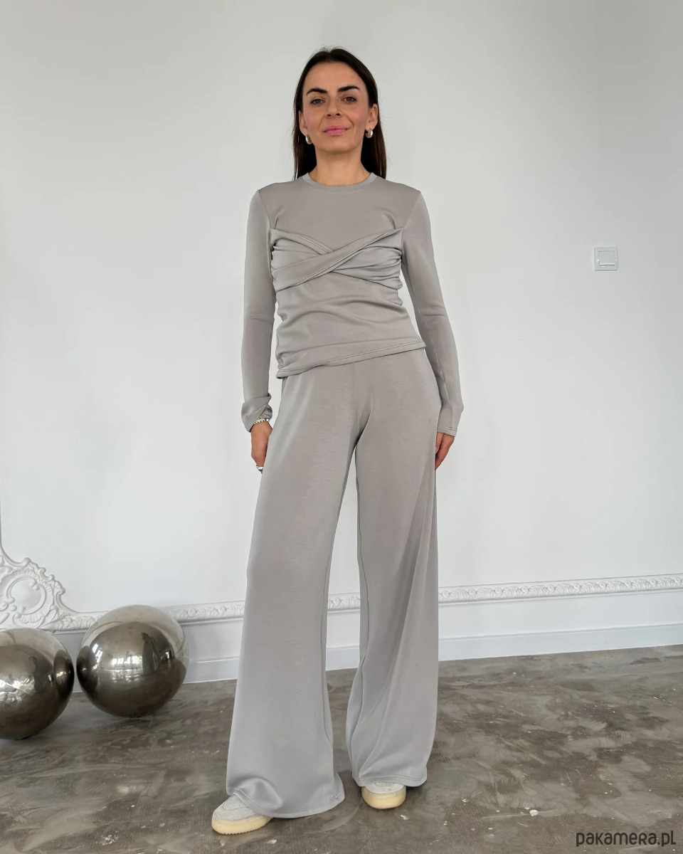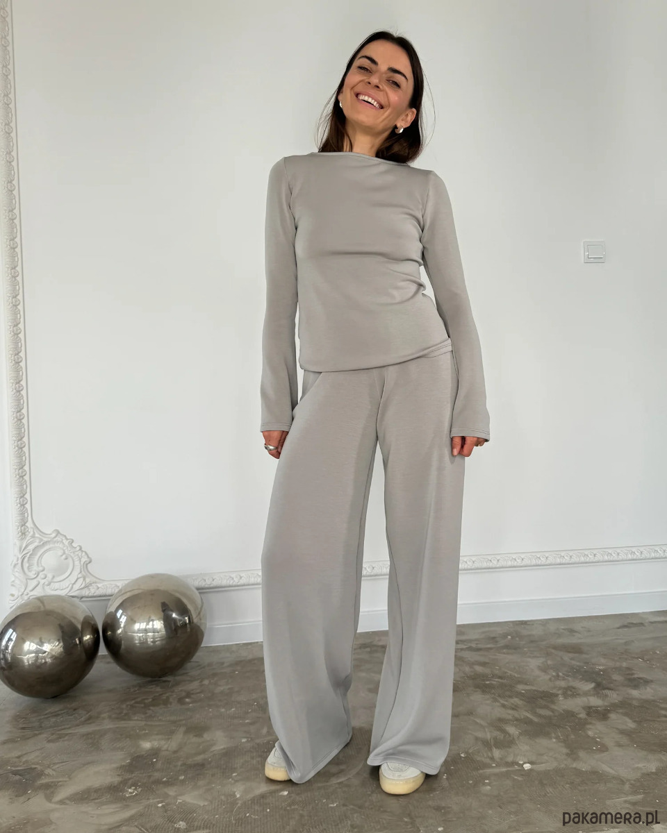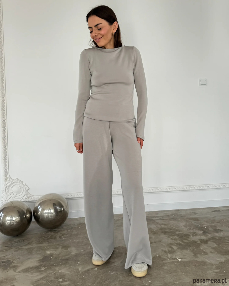 Minimalistyczny krój z rozszerzanymi rękawami nadaje całości lekkości i nowoczesnego charakteru. Jasnoszary odcień paloma jest neutralną bazą, którą łatwo wkomponujesz w kapsułową garderobę – świetnie wygląda zarówno solo, jak i w komplecie ze spodniami Gentle z tej samej tkaniny.