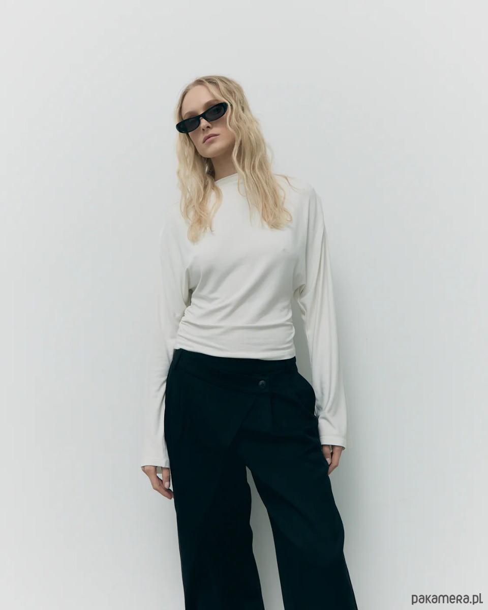 Longsleeve Serenity Super Soft Ecru to minimalistyczna baza, która podkręca każdą stylizację. Uszyty z miękkiej, oddychającej wiskozy, wyróżnia się niezwykłą lekkością i komfortem noszenia. Oversize’owy krój inspirowany latami 80. z subtelną linią ramion przypomina wizualnie poduszki – choć ich tu nie ma – nadając sylwetce nowoczesnego, architektonicznego charakteru.