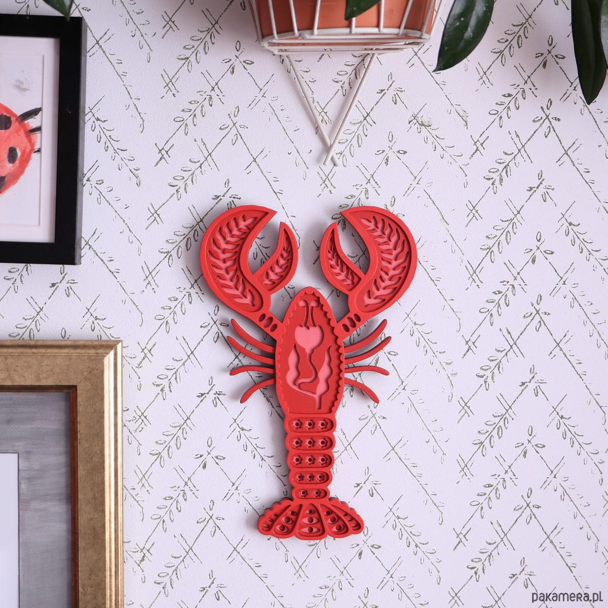 Loobster zapewni Twojemu wnętrzu niepowtarzalny charakter. Wykonany ze sklejki malowany syntetycznymi farbami w sprayu ( tylna warstawa to MDF ) Jego wymiary wynoszą 29x19 cm, co sprawia, że idealnie nadaje się do zawieszenia na ścianie lub postawienia na półce czy biurku.