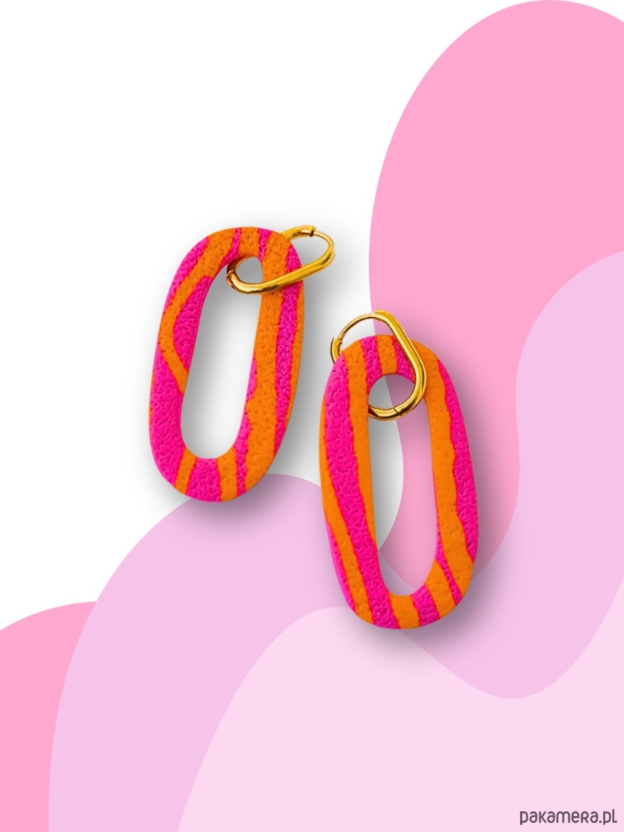 Kolczyki loopy w pomarańczowo- różowe paski-