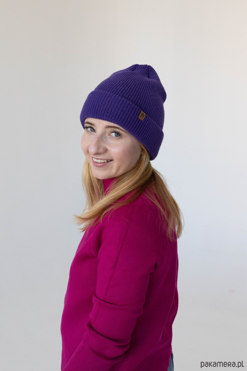 Bardzo gruba, mięsista dwuwarstwowa czapka z wełny merino w drobne prążki. Możesz ją nosić zarówno wywiniętą, jak i odwiniętą, w zależności od upodobań. Dobrze dopasowuje się do kształtu głowy i chroni uszy przed zimnem i wiatrem. To nasza największa i najcieplejsza czapka.