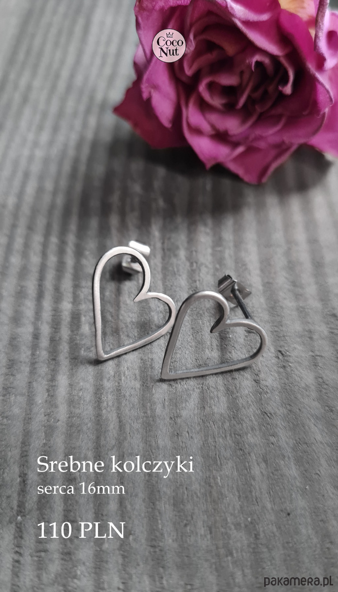 Kolczyki sztyfty serca, ok. 1,6 cm.