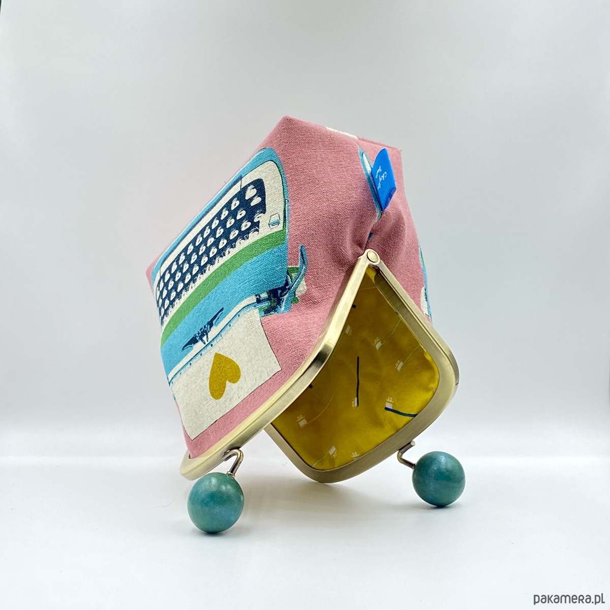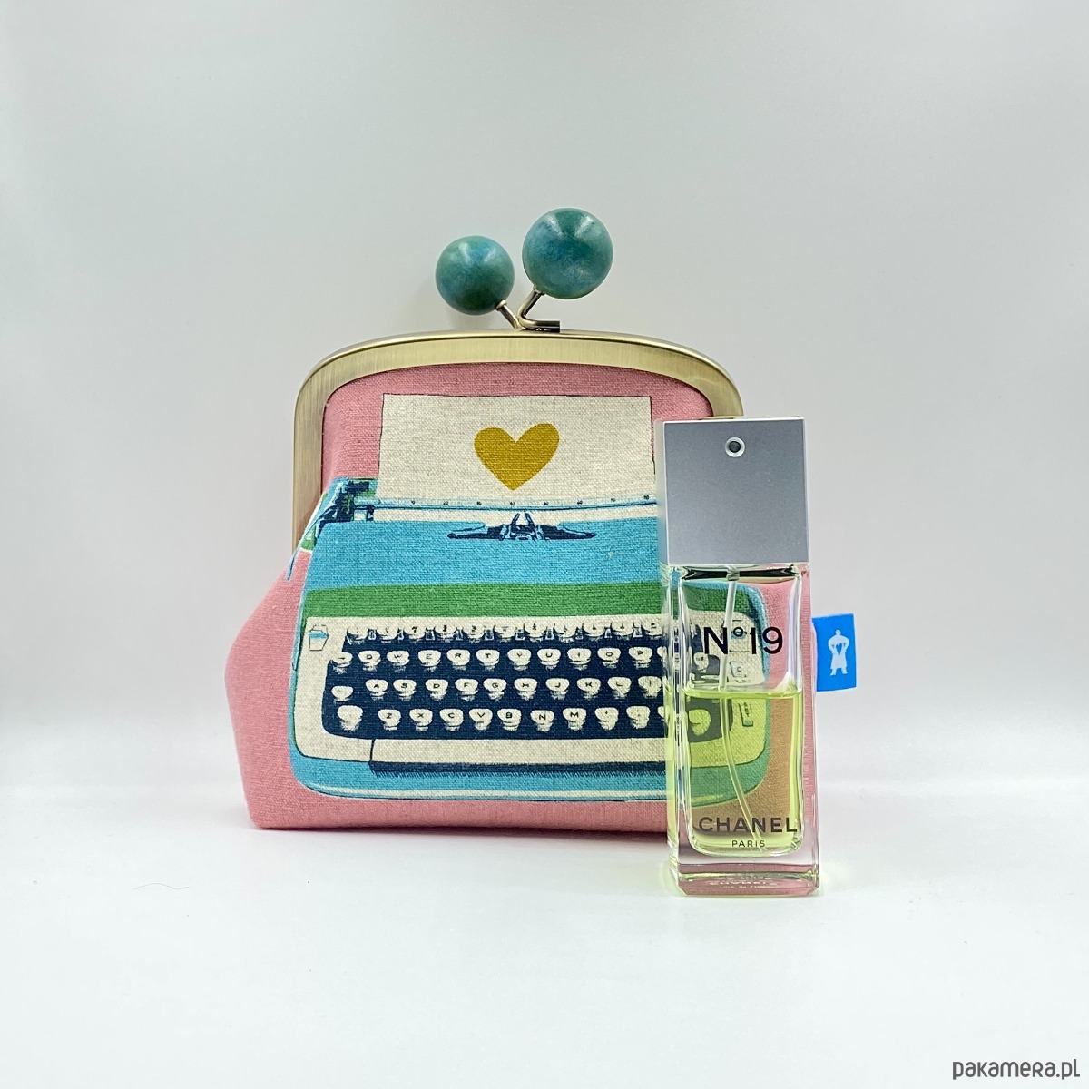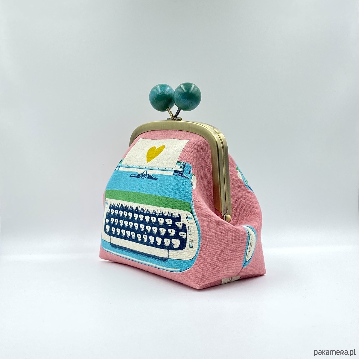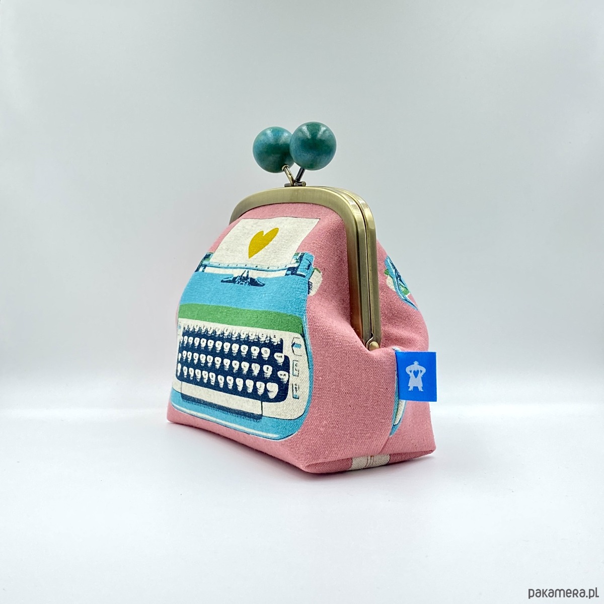 „Love Letter” to torebka / kosmetyczka ze wzmocnionego płótna z nadrukiem maszyny do pisania vintage. Od wewnątrz znajduje się musztardowa podszewka w szczoteczki. Błękitna metka.