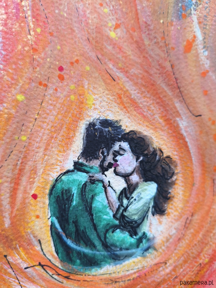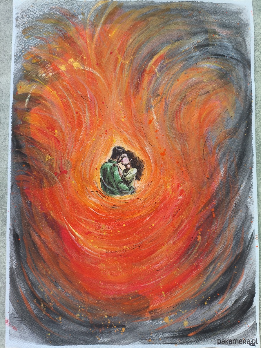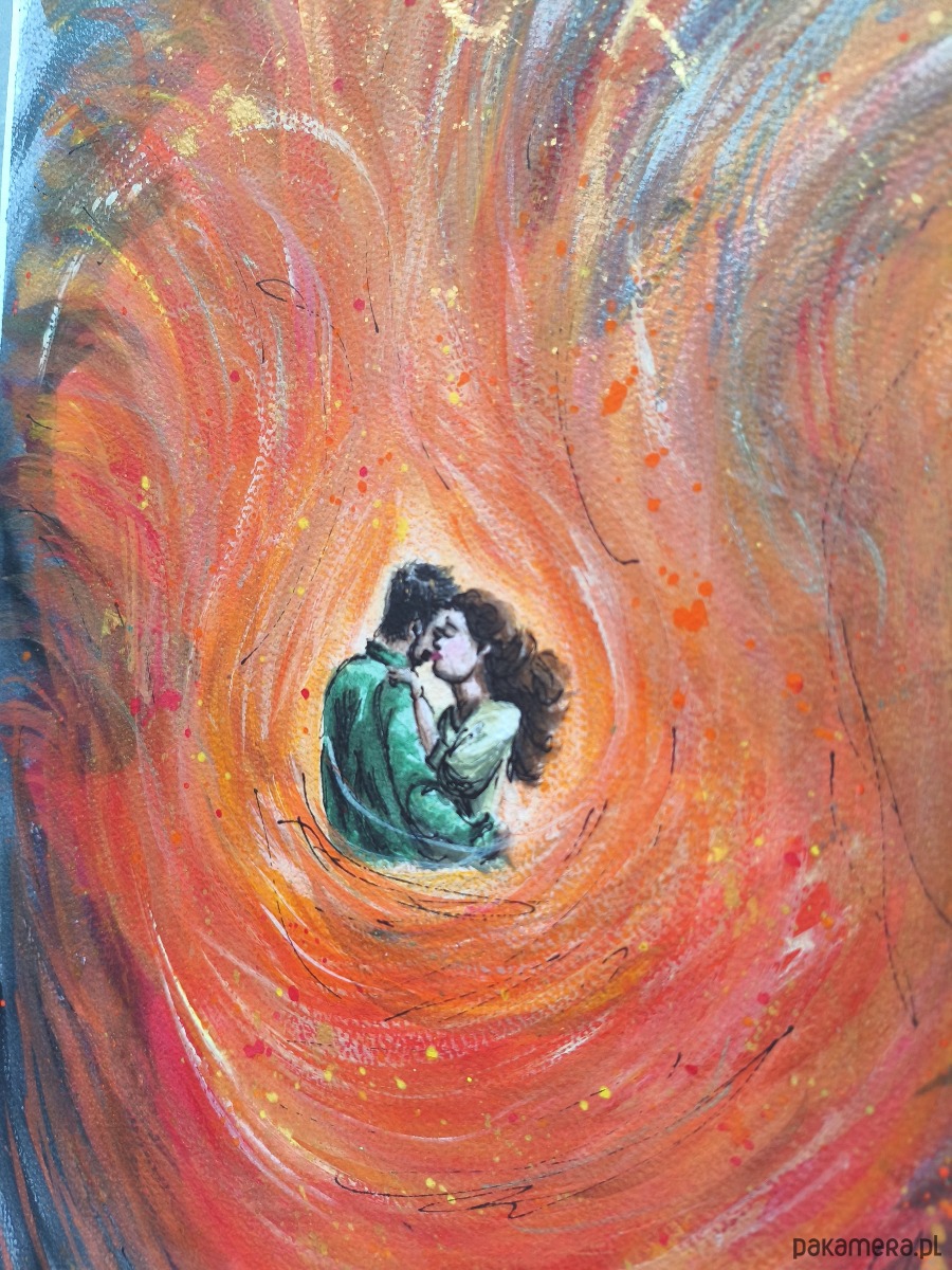 Ten unikatowy, pionowy obraz A3 (30x42 cm) jest wizualną manifestacją Miłości i Pasji.