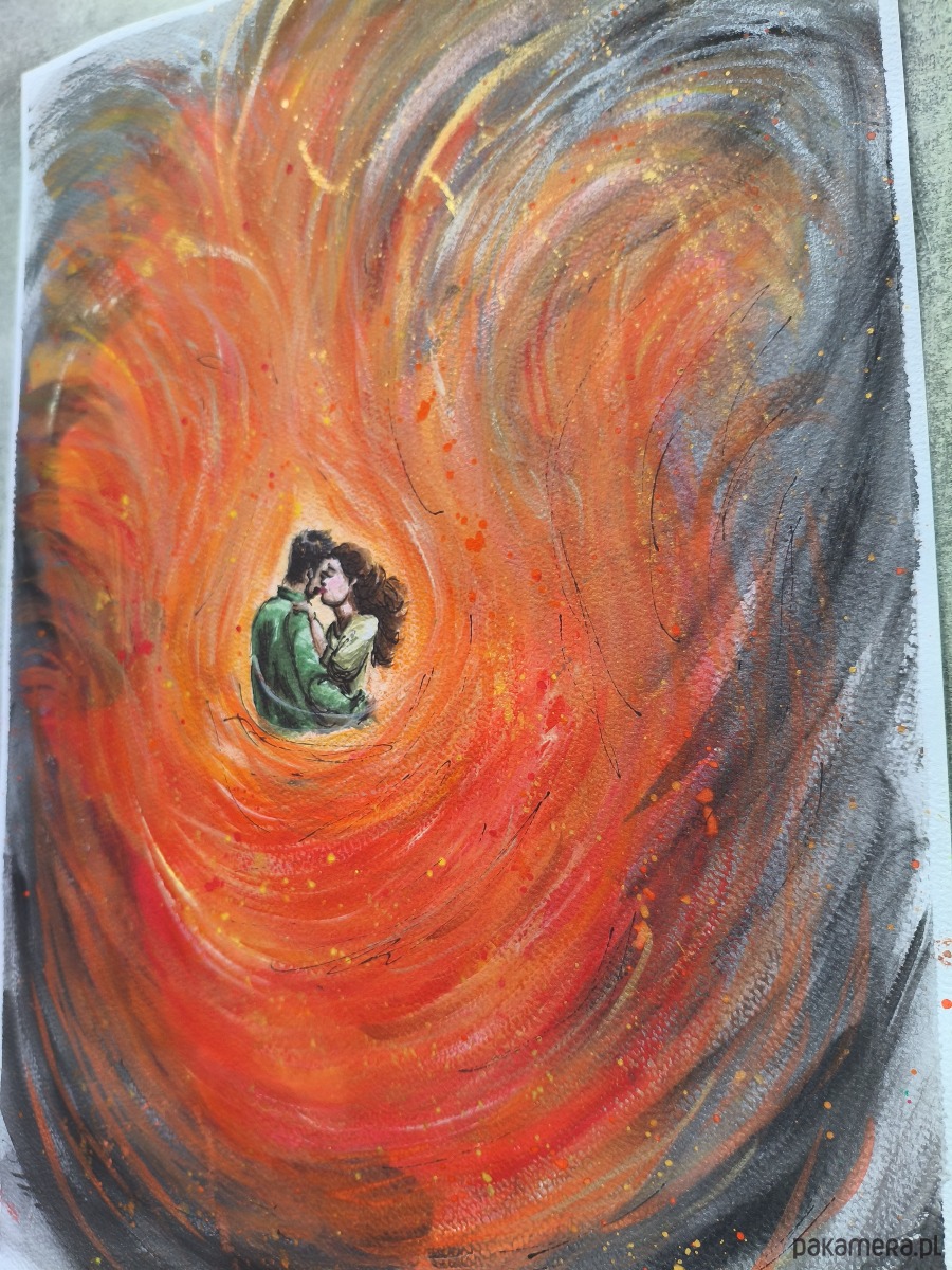 Akwarela Kochankowie Ogień Miłość Pasja Wir Emocji Intymność A3 30x42