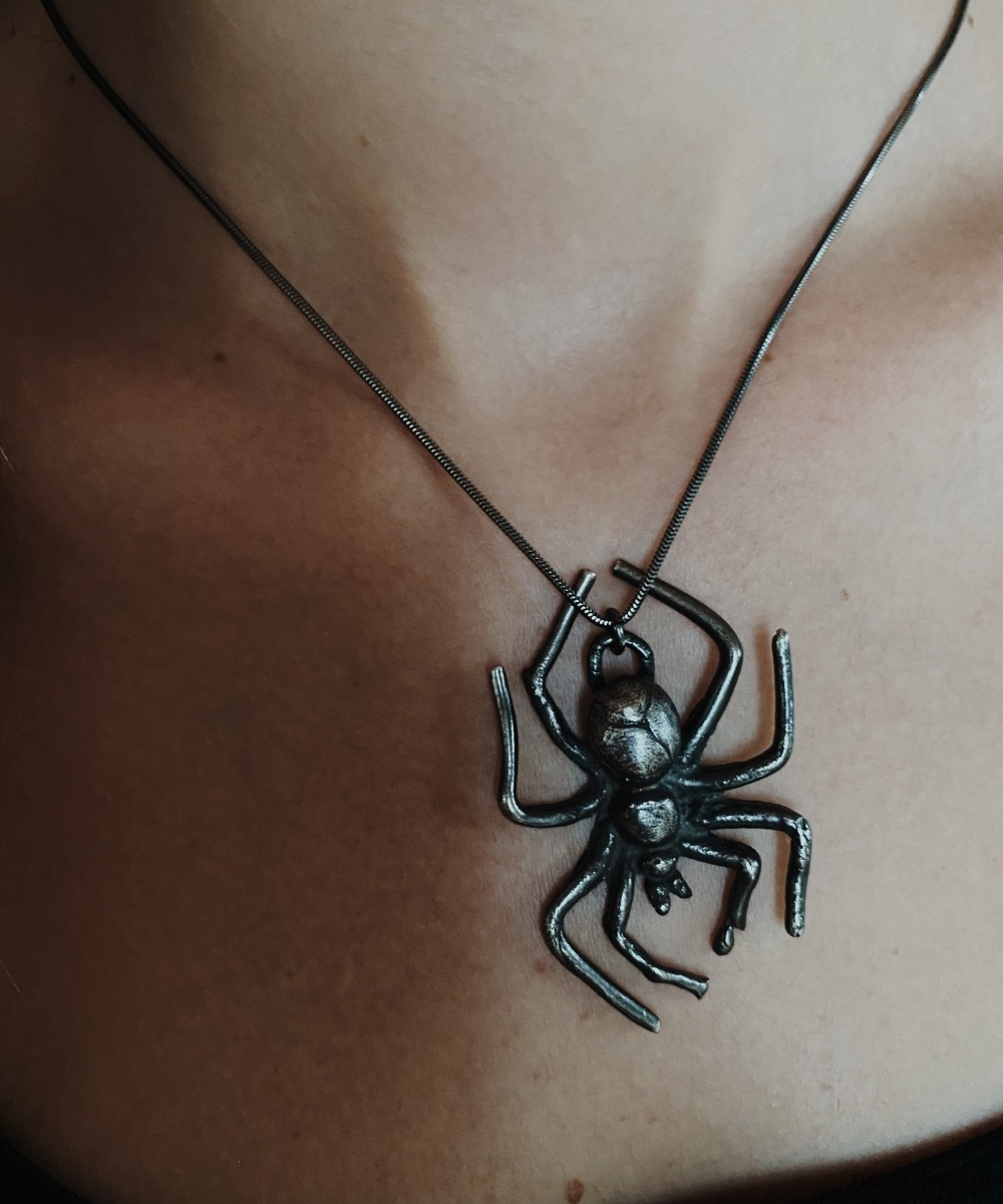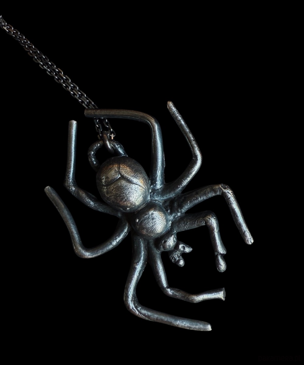 A hand-carved silver pendant. Its shape—a spider—reflects the nature of a careful observer and persistent strategist who, with silence and patience, can create their own web of possibilities.
