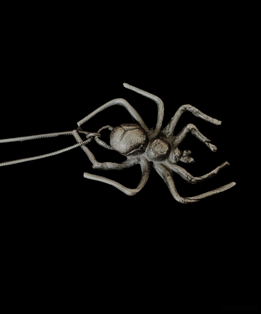 Zawieszka ręcznie rzeźbiona ze srebra. Jej kształt – pająk – odzwierciedla naturę uważnego obserwatora i wytrwałego stratega, który w ciszy i cierpliwości potrafi stworzyć własną sieć możliwości.