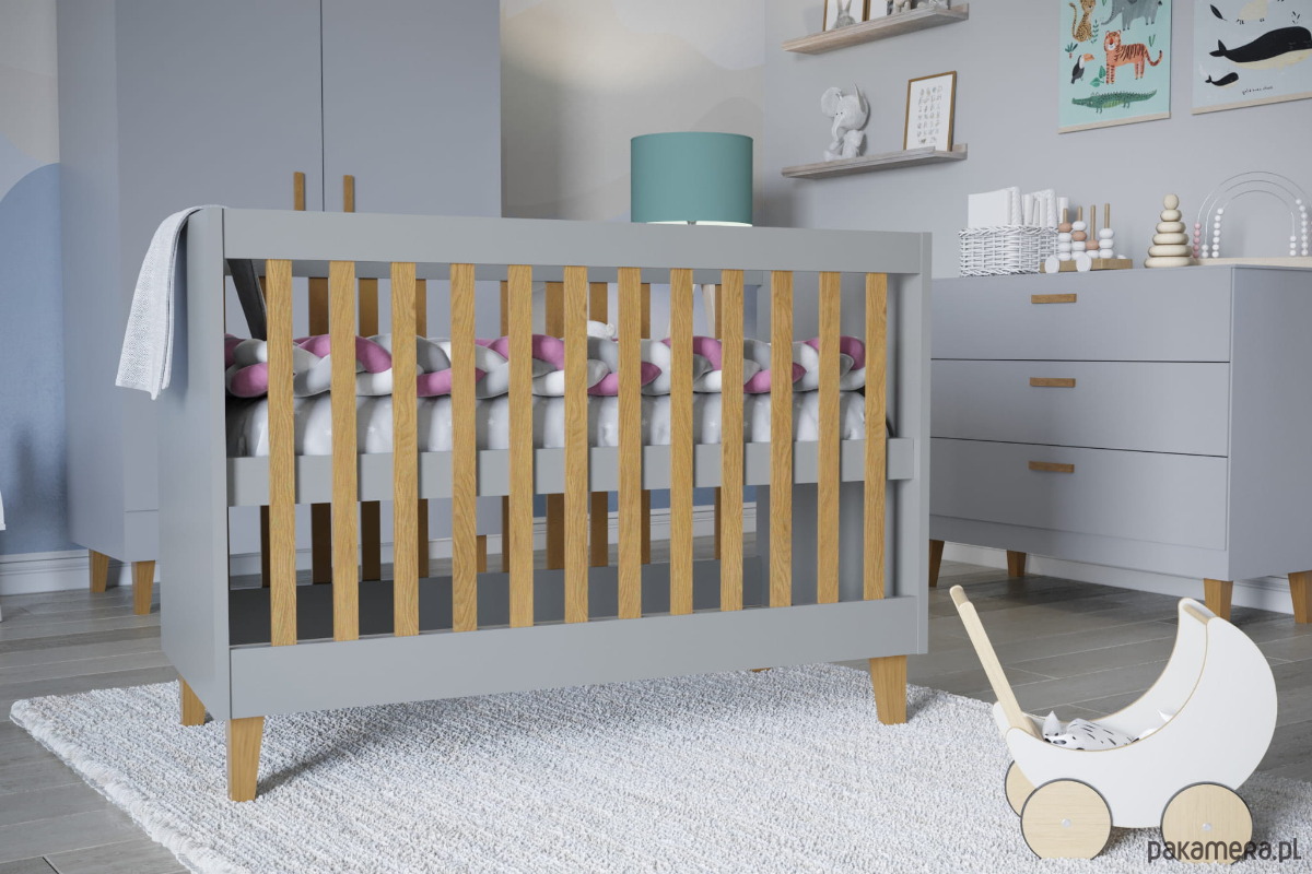 Łóżeczko niemowlęce skandynawskie szare Alice