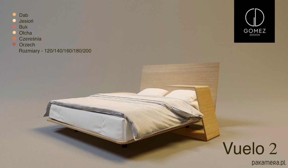 Niezwykle lekka forma i futurystyczny design to cechy charakterystyczne modelu Vuelo. Do jego stworzenia zostały użyte wyłącznie wyselekcjonowane, najlepszej klasy materiały. Jeśli chcesz w pełni spersonalizować ten projekt, możesz wybrać gatunek drewna, z którego wykonamy dla Ciebie łóżko. Dostępne są: dąb, jesion, olcha, buk, czereśnia lub orzech.