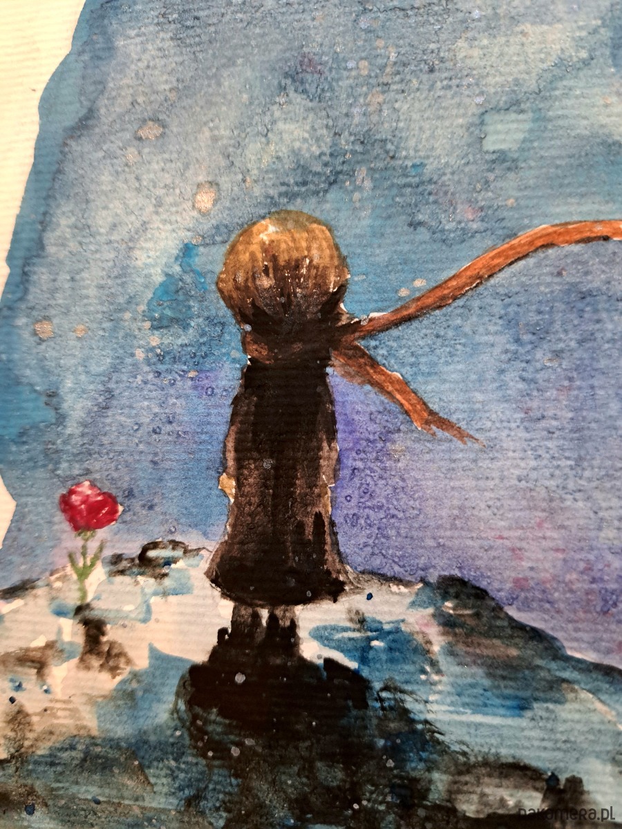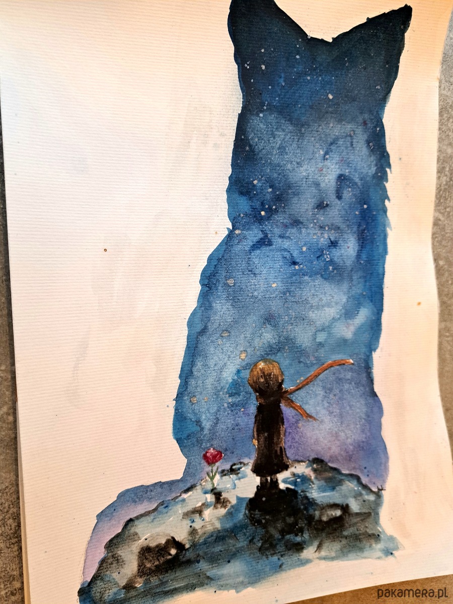 LP - Mały Książe róża lis kosmos - Obraz akwarela papier A4 21x30