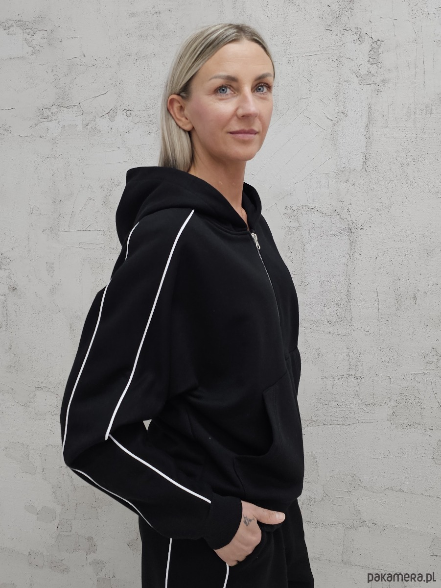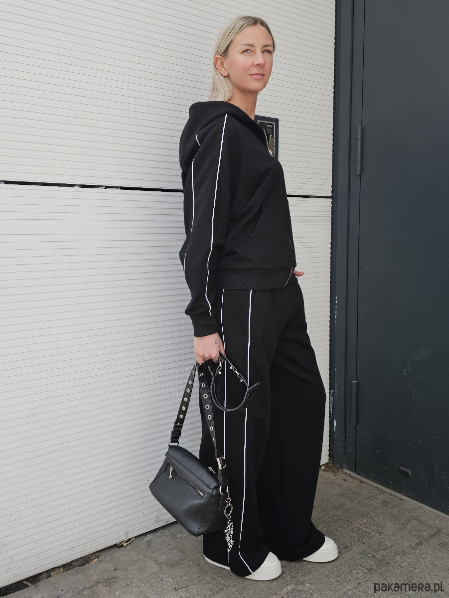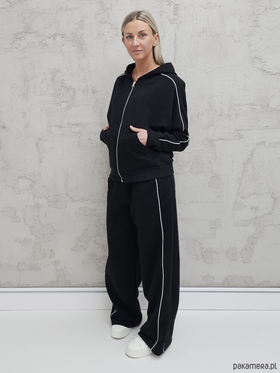 Lucia komplet z rozpinaną bluzą i szerokimi spodniami Black