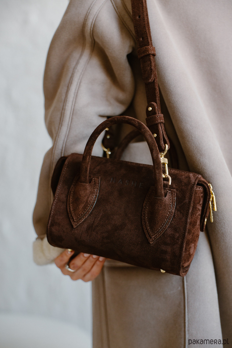 LUCKY BAG - skórzana torebka - zamszowa - brąz
