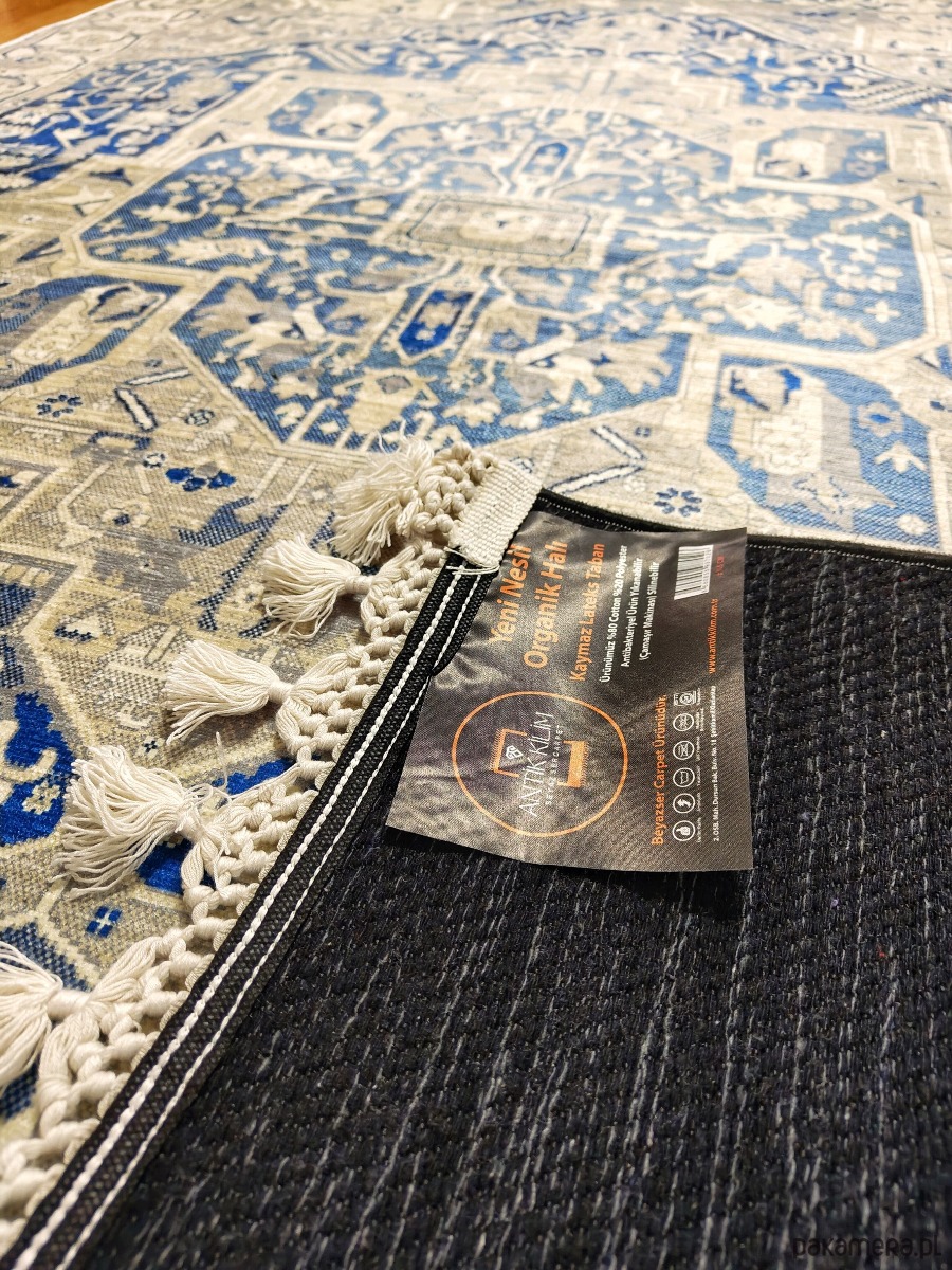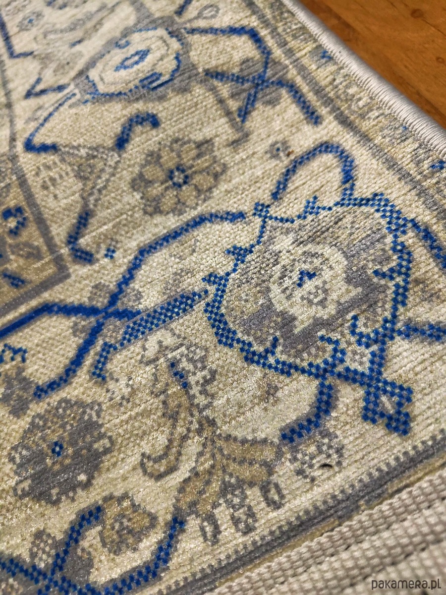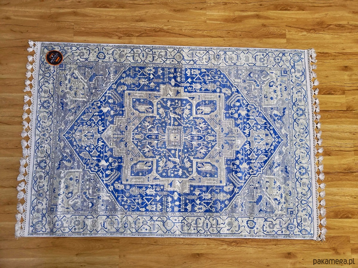 Dywan o wymiarach 120x180 cm, inspirowany klasycznym stylem perskim. Antybakteryjny, z możliwością prania, z antypoślizgowym spodem.