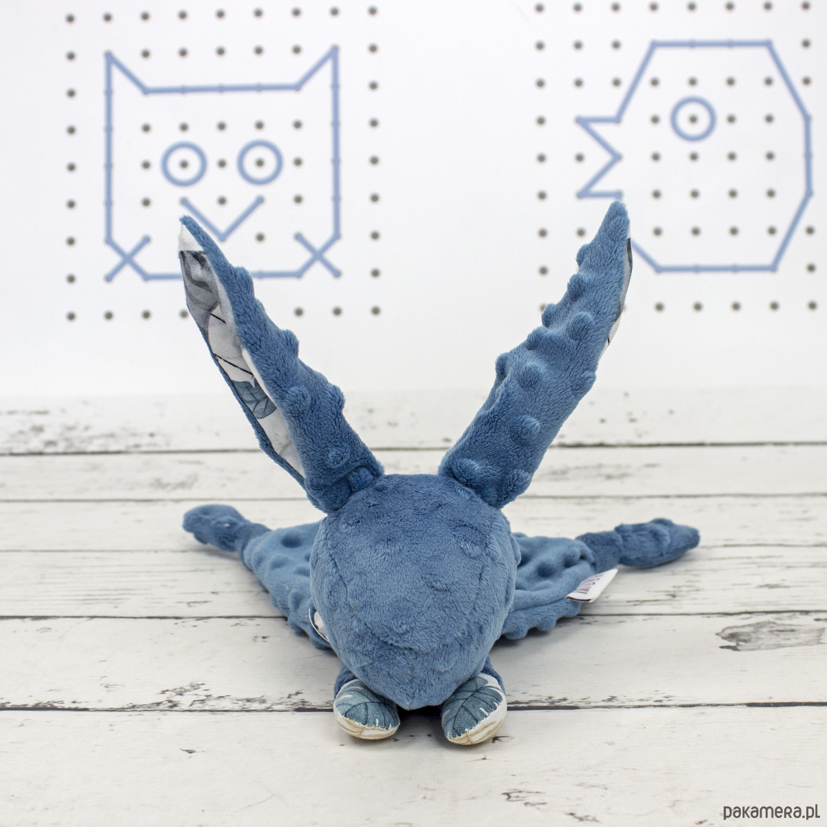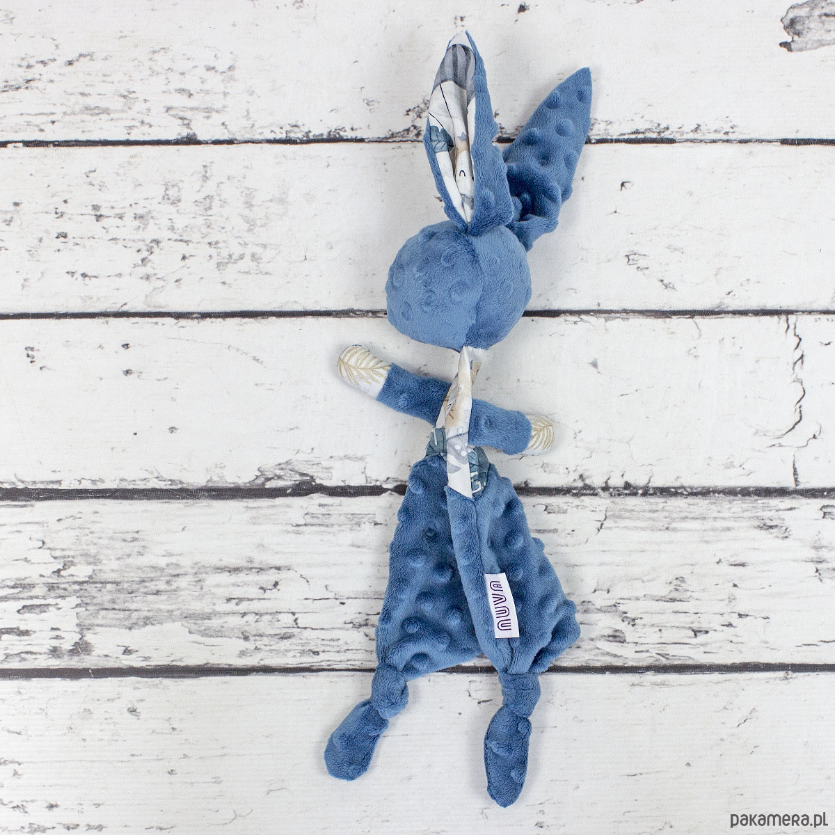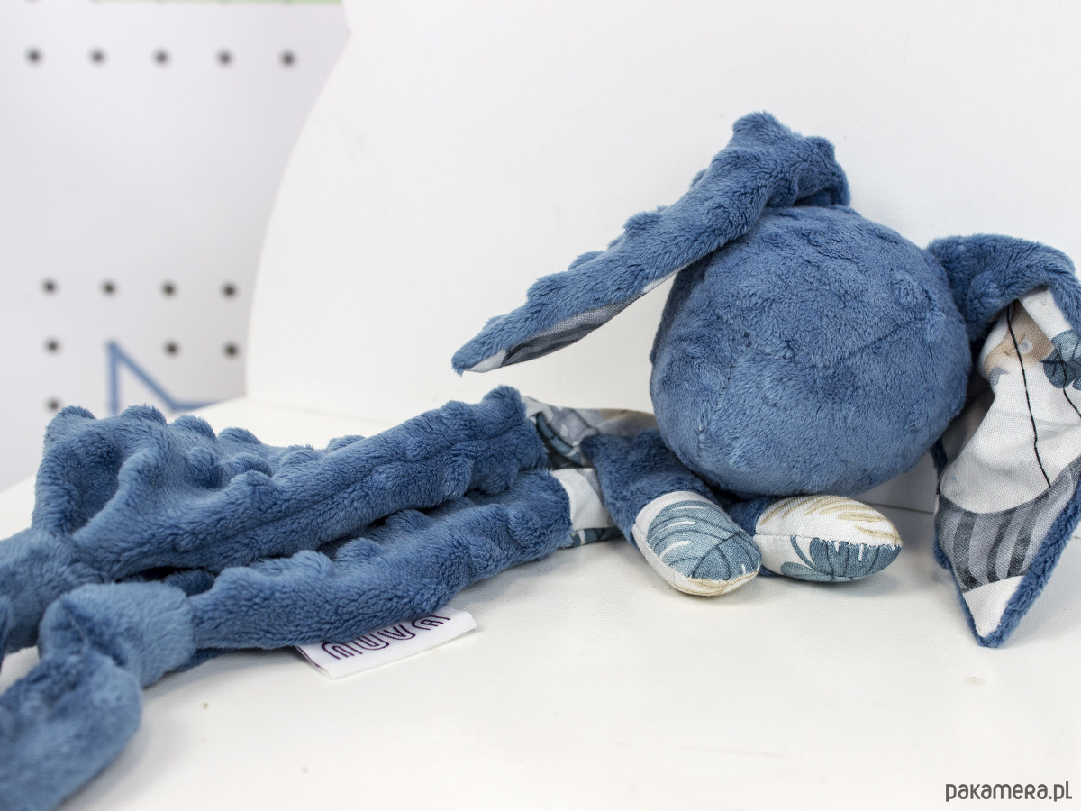 Uszy, i łapki doskonale nadają się do ciumkania, podgryzania i szarpania. Króliczek jest leciutki, i niewielkich rozmiarów, doskonale mieści się w małych rączkach i z łatwością można go obejrzeć ze wszystkich stron, i eksplorować fakturę, strukturę zapach i kolory.