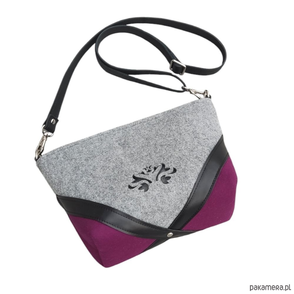 Torebka jest elegancka i funkcjonalna, zaprojektowana z myślą o codziennym użytkowaniu. Wykonana z wysokiej jakości filcu, ma miękką, ale trwałą strukturę. Dodatkowo, ozdobiona jest naszywanymi elementami z materiału wełnianego, które nadają jej oryginalnego charakteru. Skórzane pasy, które zdobią torebkę, podkreślają jej luksusowy wygląd i dodają jej subtelnej elegancji. Na przodzie nasze ażurowe logo.