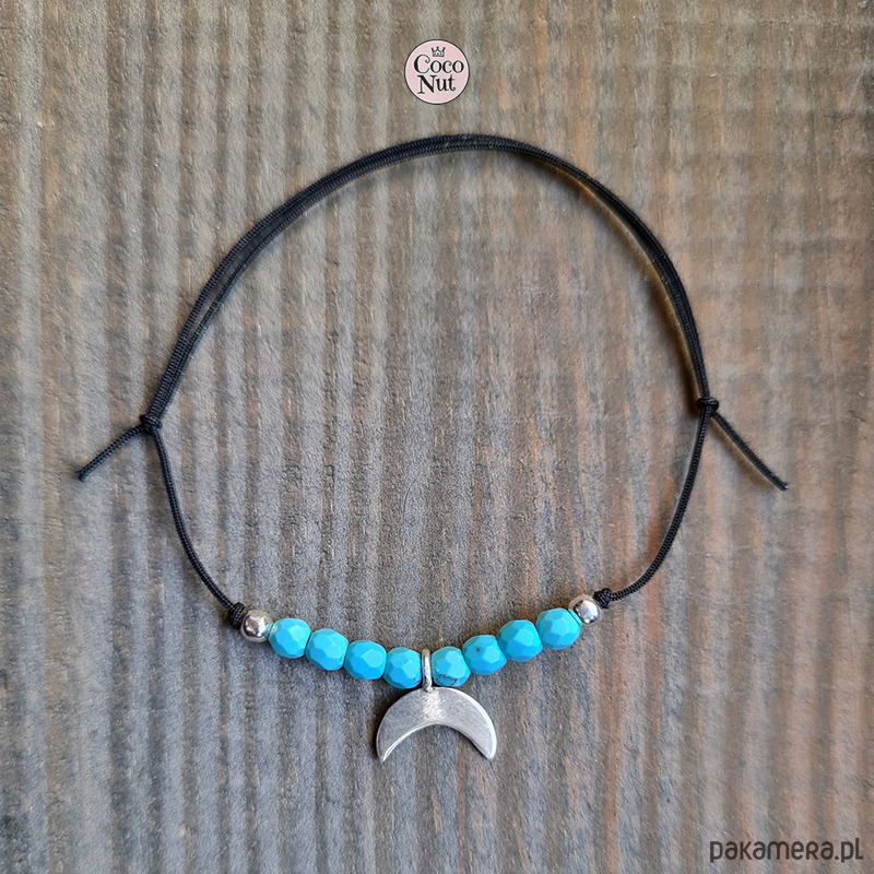 Lunula turkus i srebro 925, bransoletka na sznurku