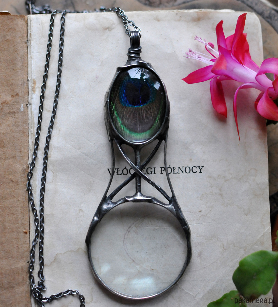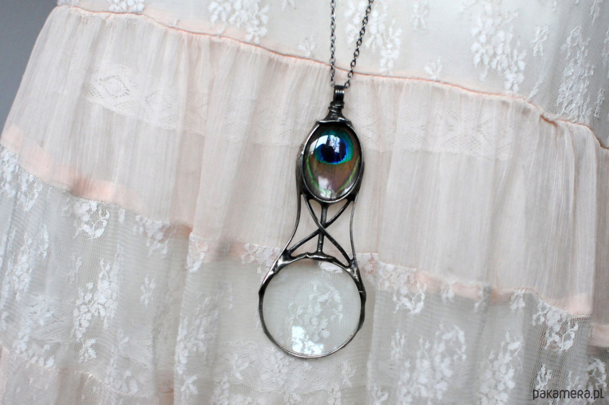 Oryginalny, duży wisior wykonany z prawdziwego szkła powiększającego.