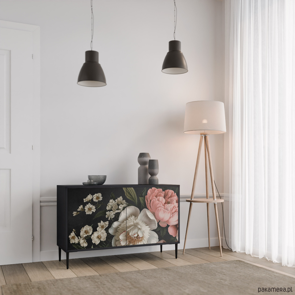 Opis produktu: Zachwyć się minimalistycznym designem i funkcjonalnością naszej dwudrzwiowej komody w kolorze czarnym. Ten elegancki mebel doskonale łączy naturalny wygląd drewna z nowoczesną prostotą, co czyni go idealnym wyborem zarówno do salonu, jak i sypialni. Solidna konstrukcja laminowanego korpusu zapewnia trwałość i stanowi obszerną przestrzeń do przechowywania, podczas gdy stylowe drzwiczki frontowe z nadrukiem nadają meblowi niepowtarzalnego charakteru. Idealne rozwiązanie dla tych, którzy cenią porządek i elegancję. Komoda nie tylko pięknie prezentuje się jako samodzielny mebel, ale także świetnie sprawdza się jako stolik pod telewizor. Obszerne wnętrze pozwala schować sprzęt elektroniczny, książki czy inne przedmioty, utrzymując przestrzeń wolną od bałaganu. Dekor dębu dodaje wnętrzu ciepła, tworząc przytulną atmosferę, idealną zarówno dla miłośników nowoczesności, jak i tradycji. Wszystkie nasze produkty powstają na bieżąco, zaraz po złożeniu zamówienia. Nie posiadamy magazynów, co sprawia, że każdy artykuł jest tworzony specjalnie dla Ciebie. Dzięki temu masz pewność, że otrzymujesz świeżo wykonany produkt, który został starannie przygotowany zgodni