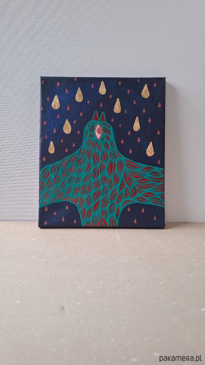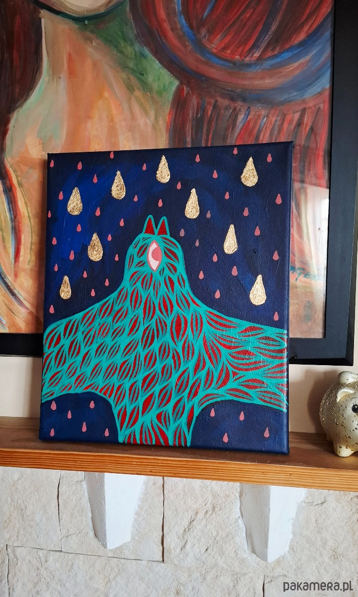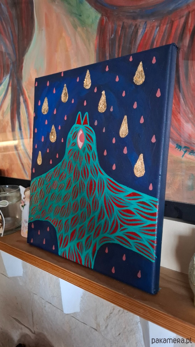 Akryl na płótnie z złotymi elementami, boki zamalowane kolorem