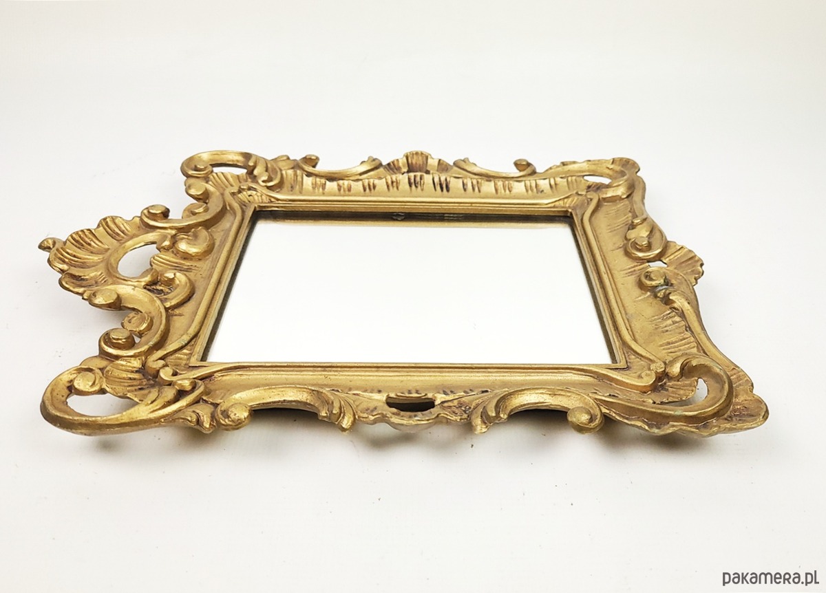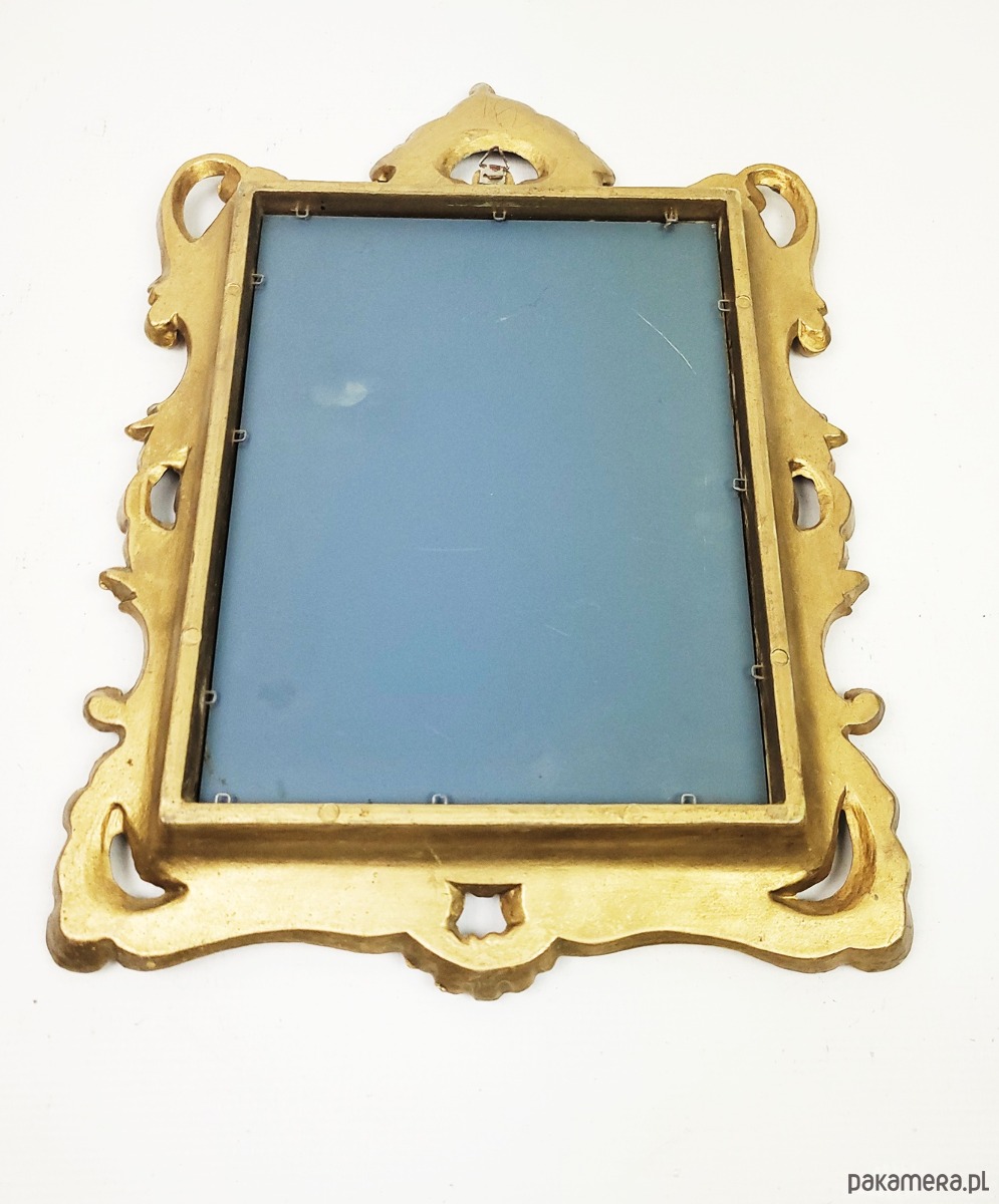 Lusterko w złoconej, rzeźbionej ramie z lat 70. Lusterko w stanie bardzo dobrym.