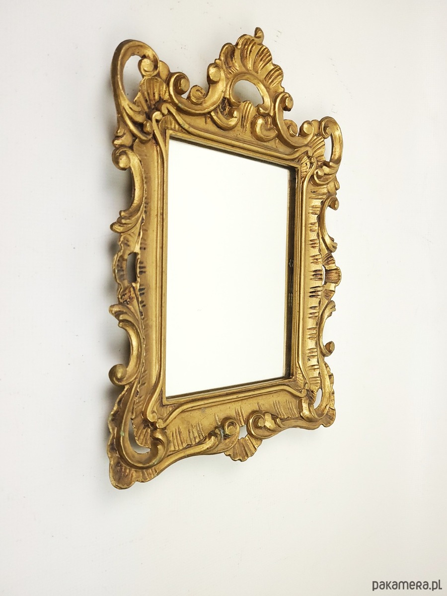 Lusterko w złoconej, rzeźbionej ramie z lat 70.