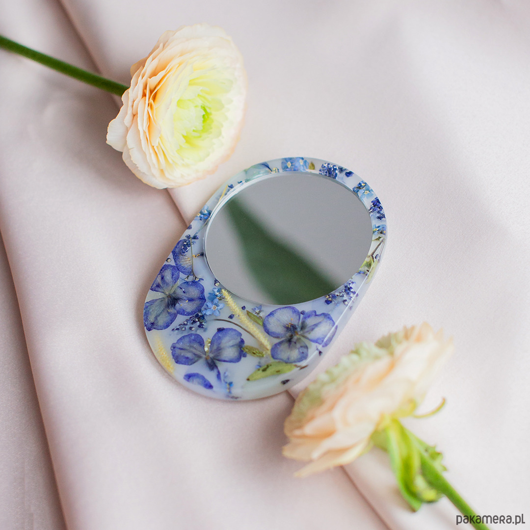 To wyjątkowe lusterko, stworzone z miłością do natury, łączy w sobie piękno przyrody i elegancję artystycznego rzemiosła. W jego unikalnym designie zamknięto prawdziwe kwiaty, które starannie dobrano i utrwalono w przezroczystej żywicy epoksydowej.