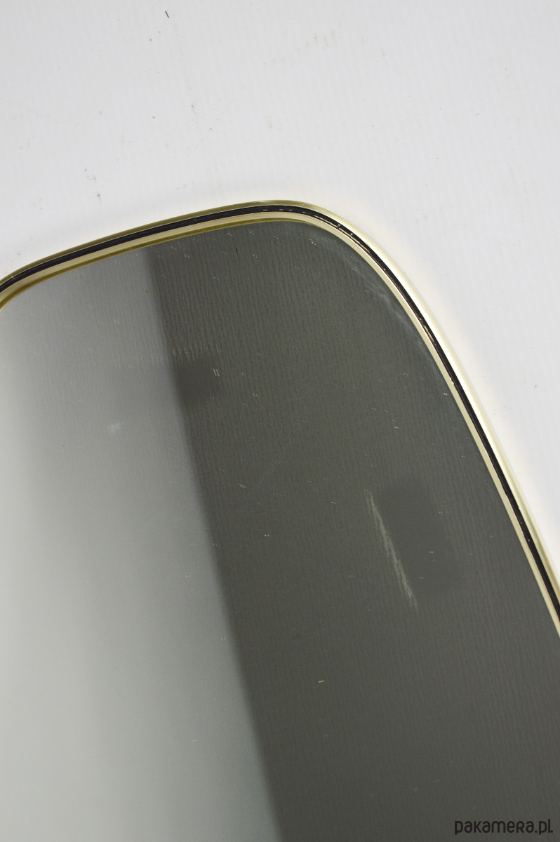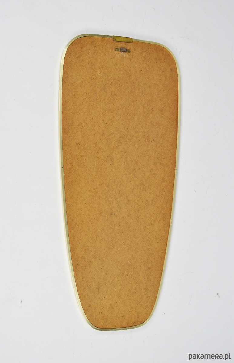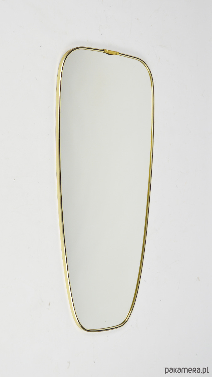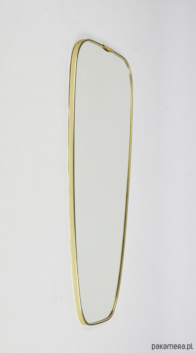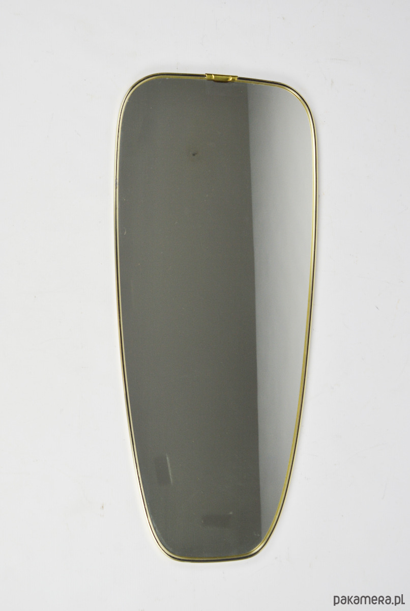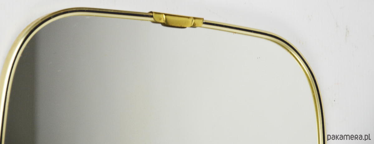 Lustro z lat 70w charakterystycznej złotej ramie z czanym paskiem. Stan zachowania dobry, widoczne na zdjęciach utlenienia na tafli lustra.