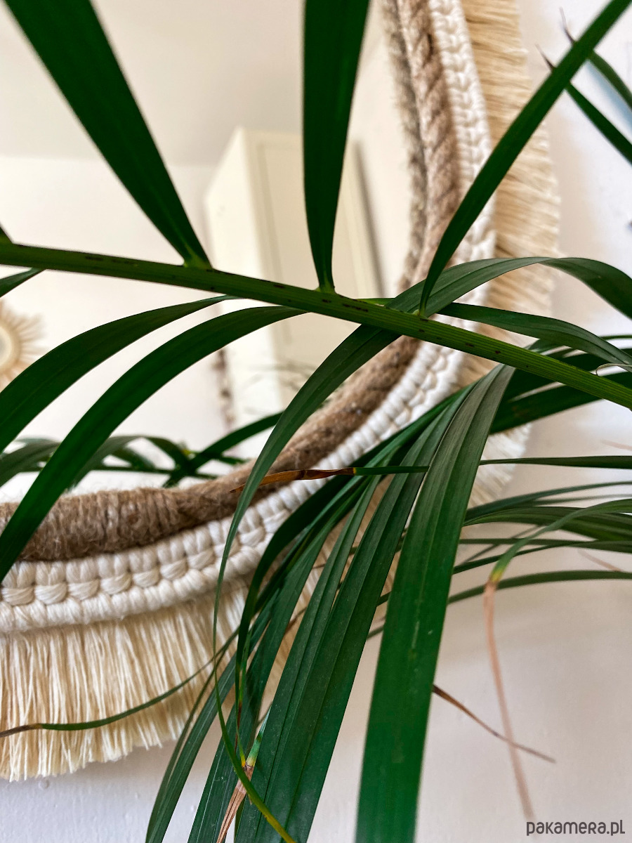 Makramowa ramka wykonana jest z najwyższej jakości sznurka bawełnianego. Jest usztywniona i wystabilizowana moją autorską metodą dzięki czemu utrzymuje swój kształt, zachowując przy tym naturalną strukturę sznurka bawełnianego. Nie trzeba jej czesać ani układać po otrzymaniu.